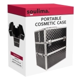 Kozmetički kovčeg XL Soulima je dizajniran tako da zadovolji potrebe moderne žene koja traži udoban i stilski način organizacije svojih kozmetičkih i osobnih potrepština. Izrađen je od kvalitetne plastike i metala, boja crna i srebrna dodaje elegantan izgled.