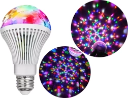 Ova rotirajuća RGB LED žarulja s univerzalnim grlom E27 stvara dinamične svjetlosne uzorke zahvaljujući prizmatastoj kupoli i integriranom motoru. Šarene zrake glatko se mijenjaju i raspršuju po zidovima i stropu, pa je idealna za kućne zabave, karaoke večeri, dječje rođendane i manje diskoteke.