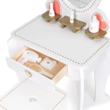 Toaletni stolić s velikim zrcalom i dekorativnim okvirom s uzorcima srdašca savršen je za ulogu male princeze ili vizažistice. Konstrukcija je sigurna i osigurava dovoljno prostora za igranje maštovitih igara.