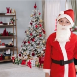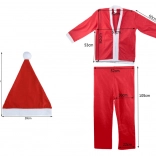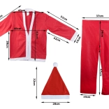 Ovaj komplet sadrži kaputić, hlače, crni remen, bradu i kapu, sve u tipičnoj crvenoj boji s „snježnim” obrubom. Set je idealan ne samo za kućne zabave, već i za vrtiće, plesne večeri ili druge posebne događaje.