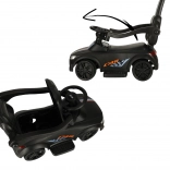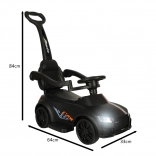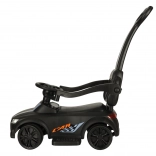 Crna guralica–gurajuće autić 3-u-1 raste s djetetom od 12 mjeseci: nudi upravljačku ručku za roditelje, sigurnosne ograde i naslon za prve vožnje te mogućnost postupnog uklanjanja dijelova za samostalnu vožnju na guralici. Realistični svjetlosni efekti i zvukovi (na 3× AA) pretvaraju svaku vožnju u zabavnu avanturu.