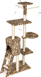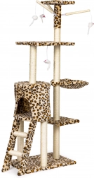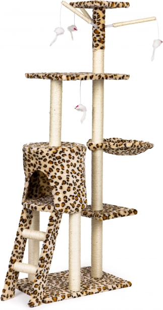 Stvorite svojoj mački sigurno utočište za odmor, grebanje i igru. Ova visoka grebalica s leopard uzorkom stoji na čvrstoj MDF bazi i opremljena je stupovima omotanim sisalom, koji potiču prirodni instinkt grebanja i istovremeno čuvaju vaš namještaj. Ne nedostaje ni najviši vidikovac s kojeg mačka ima pregled nad cijelim prostorom.