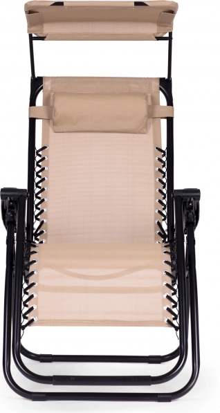 Elegantna ležaljka za cjelodnevni odmor nudi spoj udobnosti i praktičnosti. Zahvaljujući izdržljivom čeličnom okviru s praškastim lakiranjem stabilna je i pri punom nagibu, dok prozračna, vodopropusna tkanina brzo se suši i ugodna je na dodir. Podesivo sjenilo štiti od sunca, a mekani jastuk za glavu podupire glavu i vrat.