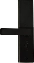 Robusno kućište od aluminija u mat crnoj boji savršeno se uklapa u moderne interijere. Brava je pogodna za lijeva i desna vrata debljine 3,5–5 cm i omogućuje brzu montažu. U slučaju pražnjenja baterija uvijek se može koristiti mehanički ključ.