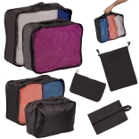 Četiri kocke za odjeću, vrećica za cipele, vaku vrećica i mala džepna torbica za sitnice – sve usklađeno u jednom pakiranju.