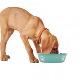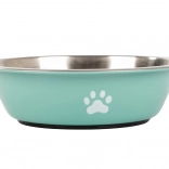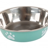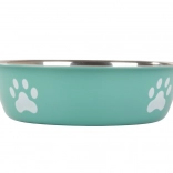 Tirkizna posuda s printom šapica izgleda odlično i pogodna je za pse i mačke za svakodnevno hranjenje.