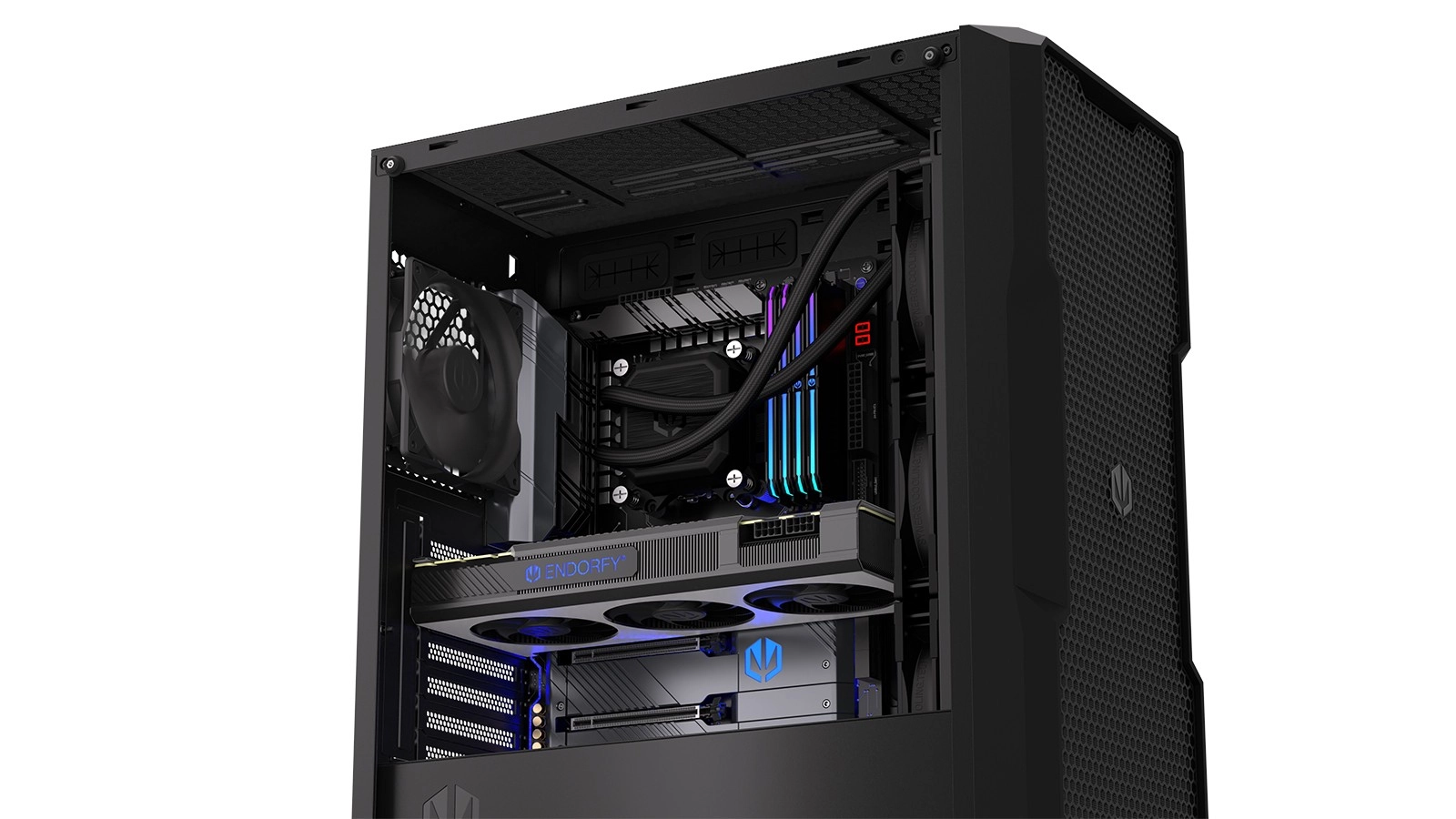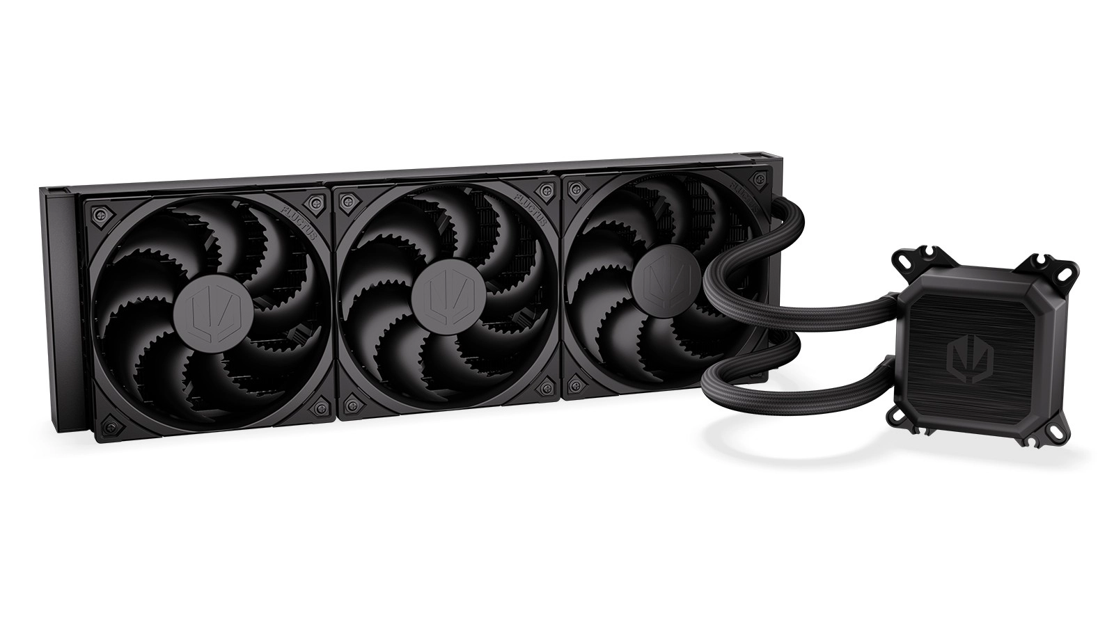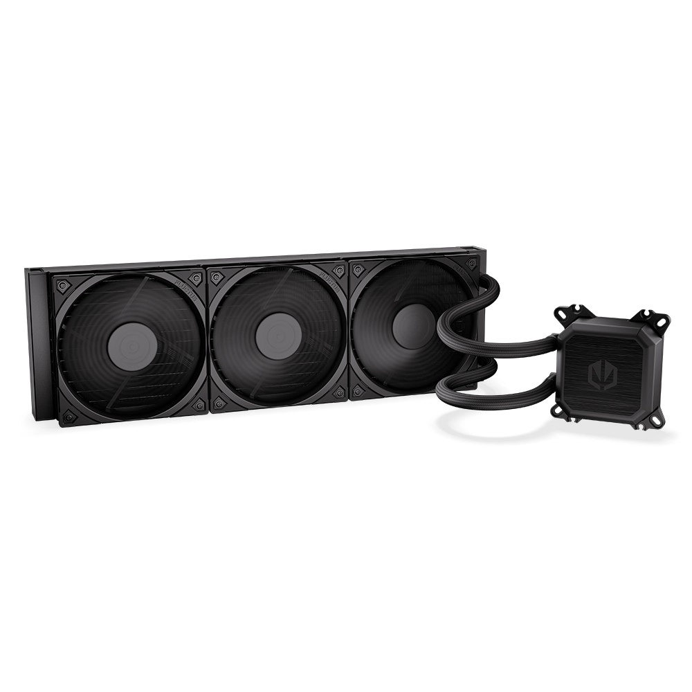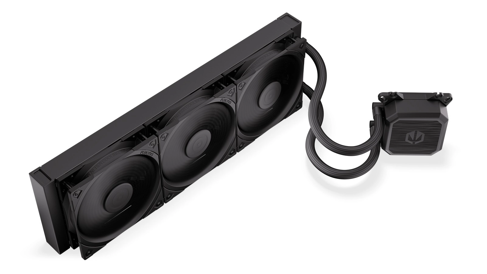 Veliki radijator pruža visok kapacitet hlađenja, a unaprijed ugrađeni ventilatori s fleksibilnim crijevima (~42 cm) ubrzavaju montažu i u većim kućištima.