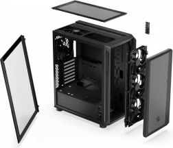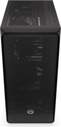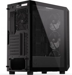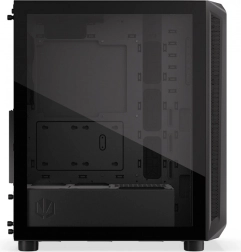 Kućište je opremljeno prozirnim bočnim panelom od kaljenog stakla koji omogućuje vidljivost unutarnjih komponenti.
