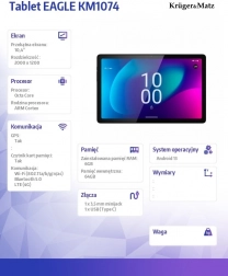 Krüger & Matz Eagle 1074 kombinira elegantan dizajn s visokim performansama i modernim značajkama. Zahvaljujući 10,4-inčnom IPS zaslonu i osmojezgrenom procesoru osigurava oštru sliku i nesmetan rad.