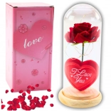 Vječna ruža u staklenoj kupoli s LED osvjetljenjem, crvena, sa srcem