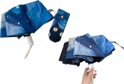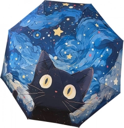 Automatski sklopivi kišobran je idealan izbor za svakodnevno korištenje i putovanja. Zahvaljujući čvrstoj i laganoj konstrukciji osigurava dugovječnost i otpornost na jake nalete vjetra. Ovaj kišobran privlači pažnju svojim jedinstvenim dizajnom s motivom crne mačke na plavom nebu.
