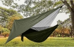 Turistička viseća mreža TRIZAND s nosivošću do 250 kg dizajnirana je za dvije osobe i izrađena je od visokokvalitetnih materijala. Otporna je na habanje i lako podnosi čak i dva odrasla muškarca sa snažnom građom. Njena laka montaža omogućuje brzo i udobno postavljanje u samo 6 minuta.
