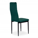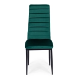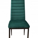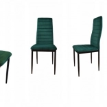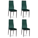 Ovaj set od četiri blagovaonske stolice idealan je izbor za vašu blagovaonicu ili dnevni boravak. Oduševit će vas svojim modernim dizajnom i na dodir ugodnim zelenim baršunastim presvlakama. Zahvaljujući visokom profiliranom naslonu i visokokvalitetnom pjenastom punjenju, stolice pružaju maksimalnu udobnost. Crne metalne noge daju stolicama elegantan izgled i istovremeno jamče stabilnost.