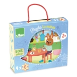 Ove simpatične drvene puzzle VILAC s temom domaćinstva donose djeci radost otkrivanja i slaganja. Četiri različite slike pružaju raznoliku zabavu, dok kompaktna drvena kutija s ručkom olakšava prenošenje i spremanje.