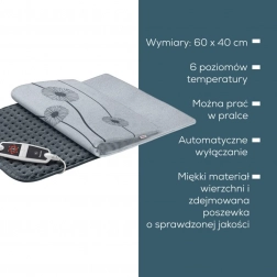Uživajte u ugodnoj, umirujućoj toplini s ekstra velikom električnom podlogom Beurer HK 125 XXL Cosy u elegantnoj sivoj boji. Nudi 6 postavki temperature, brzo zagrijavanje i sigurnosno isključivanje nakon 90 minuta. Vrlo mekan, prozračan materijal nježan je prema koži, a za jednostavno održavanje podloga i navlaka se mogu prati u perilici na 30 °C.
