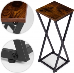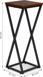 Stilski stalak za cvijeće u loft stilu unosi u interijer moderan industrijski naglasak. Zahvaljujući kompaktnim dimenzijama i čvrstoj čeličnoj konstrukciji, idealan je za dnevni boravak, ured i terasu. Prahom lakirani čelik, stabilna konstrukcija s križnim ojačanjima, drveni dekor na gornjoj ploči i protuklizne nožice za zaštitu poda. Maksimalna nosivost 5 kg.