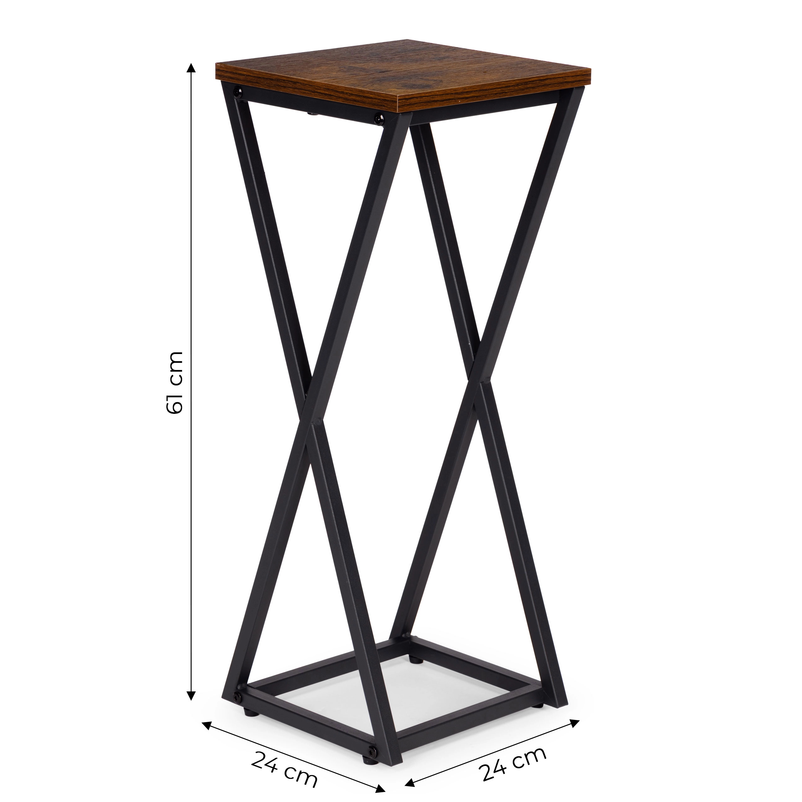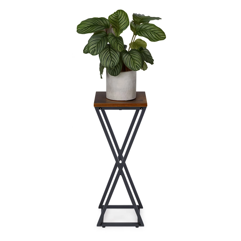 Izložite svoje omiljene biljke stilski i uz uštedu prostora. Ovaj visoki stalak s geometrijskim metalnim okvirom i kvadratnom pločom u dekoru drva elegantno podiže posude za cvijeće, vaze ili dekoracije. Minimalistički industrijski dizajn lako se uklapa u moderne interijere te im daje prozračnost i vizualni red.