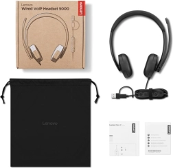 Profesionalne slušalice Lenovo Wired VoIP Headset 5000 idealne su za ured i rad od kuće. Nude certifikaciju za Microsoft Teams, povezivanje USB‑C s adapterom na USB‑A za jednostavno plug‑and‑play korištenje, lagan i udoban dizajn za cjelodnevno nošenje te uklanjanje buke uz podršku AI‑a za kristalno čiste pozive i u bučnom okruženju.