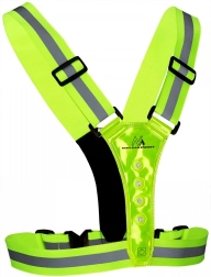 Pojas kombinira visoku vidljivost reflektirajućih elemenata s aktivnim LED osvjetljenjem za pouzdanu zaštitu tijekom aktivnosti na otvorenom. Zahvaljujući četiri podesive kopče i elastičnim trakama lako se oblači preko majice, sportskog dresa ili zimske jakne. Bijele LED s jedne strane i crvene s druge pomažu jasno označiti smjer kretanja.