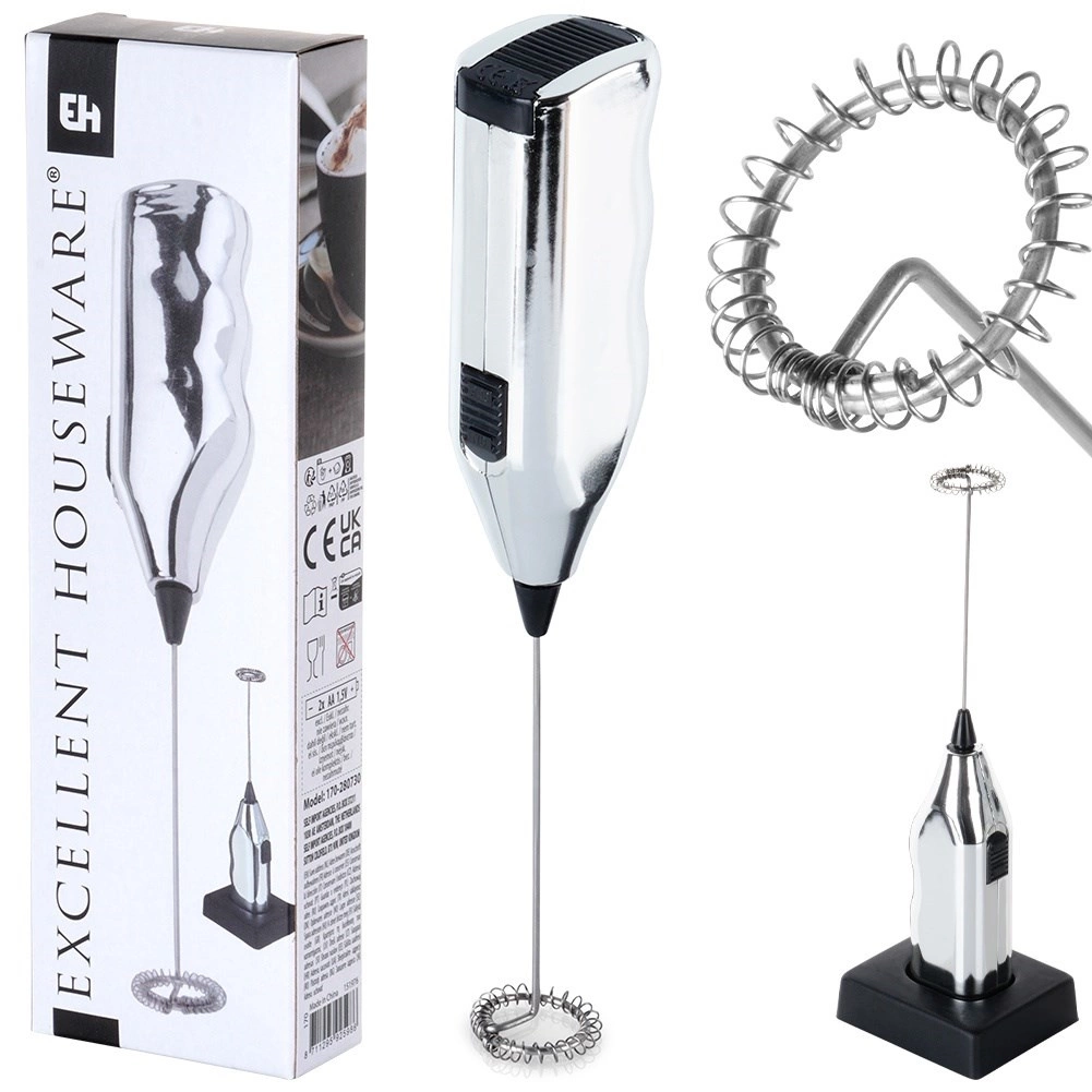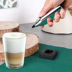 Kompaktan električni pjenjač mlijeka duljine 20 cm sa stalkom za praktično odlaganje. Nudi brzo pjenjenje mlijeka za cappuccino, latte i vruću čokoladu, jednostavno upravljanje jednim gumbom i čvrstu izradu s metalnim nastavkom metlice. Napajanje osiguravaju 2× AA baterije (nisu uključene).