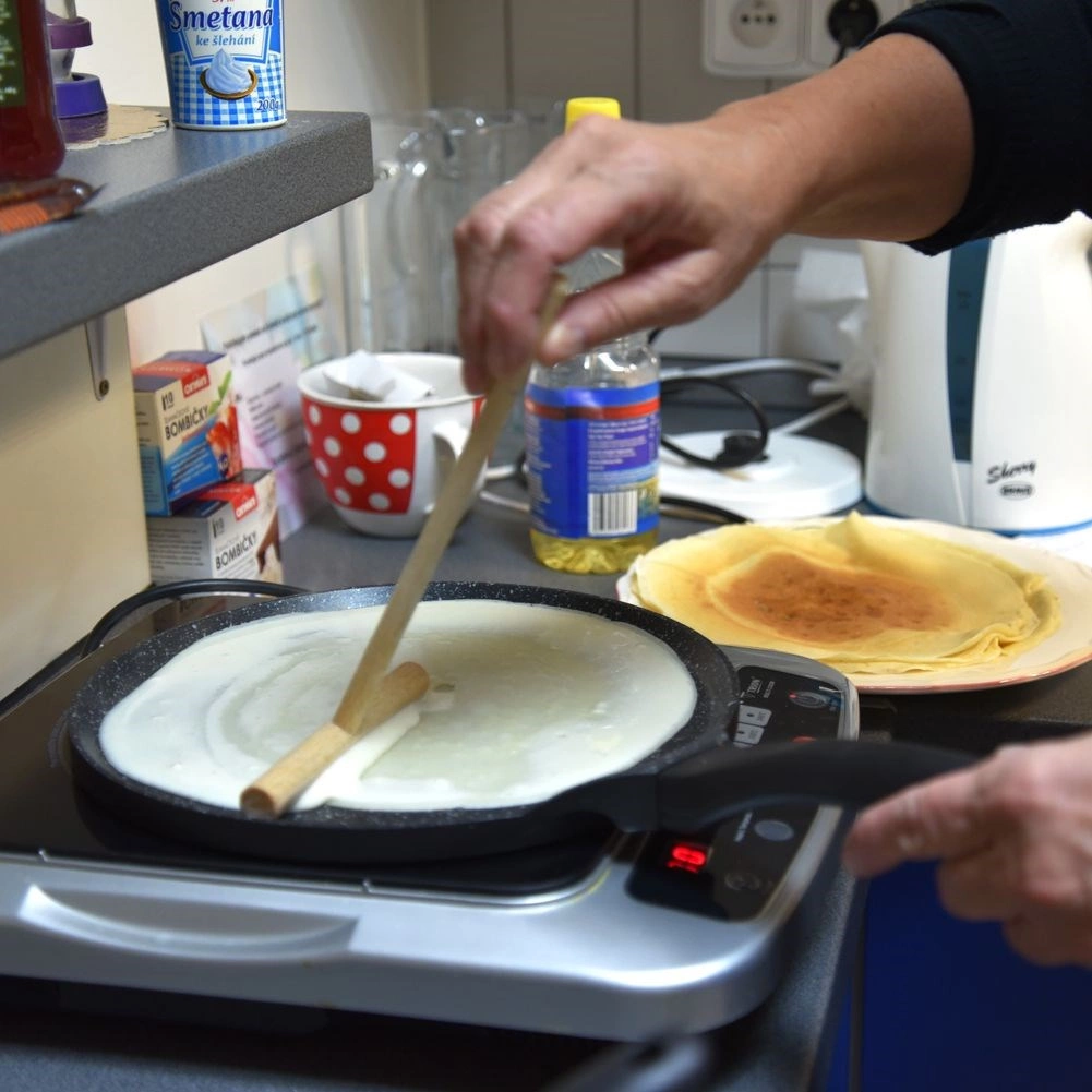 • Ravnomjerno razmazivanje tijesta za savršeno tanke palačinke