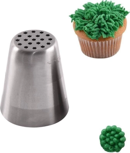 Ova ruska nastavka omogućuje brzo i efektno stvaranje dekoracija koje podsjećaju na travu ili fine vlasi. Savršena je za ukrašavanje kremom, glazurom i tijestom te će zadovoljiti i početnike i profesionalne slastičare. Zahvaljujući robusnoj konstrukciji od nehrđajućeg čelika dugotrajno je izdržljiva i sigurna za kontakt s hranom.