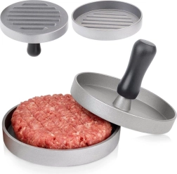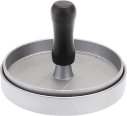 Praktični kalup za prešanje burgera promjera 12 cm za brzo i precizno oblikovanje. S njim ćete napraviti ujednačene pljeskavice idealne debljine i težine. Zahvaljujući izdržljivom aluminiju i ergonomskoj ručki, preša osigurava ugodnu uporabu, lako čišćenje i pouzdane rezultate kod kuće, uz roštilj i u gastronomiji.