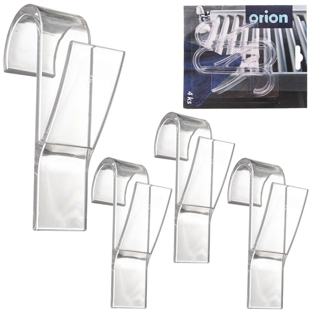 Set od 4 transparentne kukice dizajniran je za montažu bez bušenja – jednostavno ih objesite na ljestvičasti ili sobni radijator debljine do 2,5 cm. Svaka kukica ima dimenzije 6 × 2,5 × 10 cm i zahvaljujući obliku pouzdano drži ručnike, ogrtače, pidžame i kuhinjske krpe.