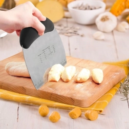 Ova multifunkcionalna lopatica kombinira razmazivač, sjeckalicu i strugalicu u jednom. Odlična je za rad s tijestom, kremama i fondantom te olakšava prenošenje, porcioniranje i izravnavanje površina. Zahvaljujući oštrom rubu lako ćete nasjeckati orahe, luk ili povrće.