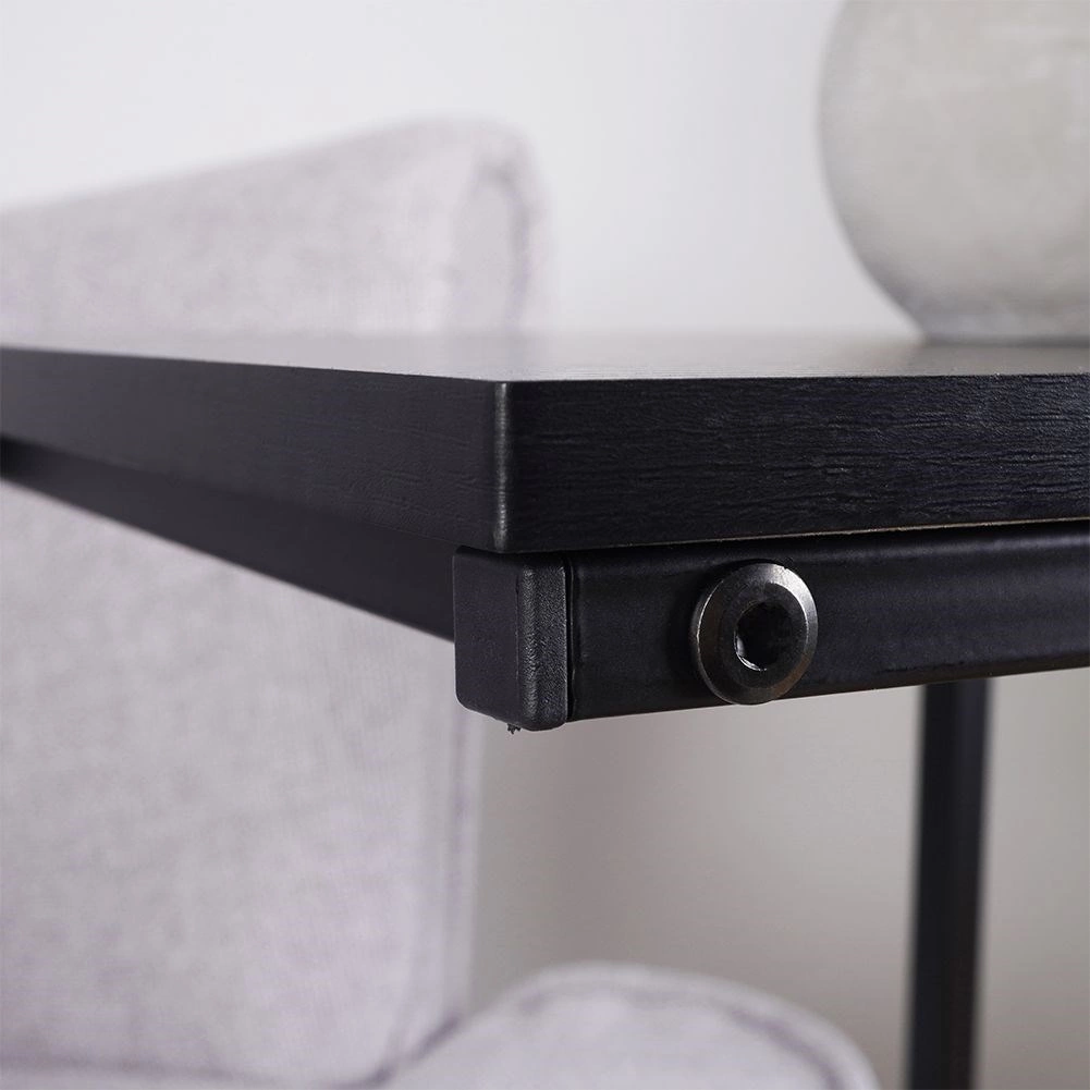 Stilski bočni klupski stolić u modernom loft dizajnu kombinira čvrst metalni okvir i izdržljivu MDF ploču u crnoj boji. Savršen uz sofu, naslonjač ili krevet – za kavu, prijenosno računalo ili doručak. Stabilna konstrukcija, kompaktne dimenzije i univerzalna primjena za dom, ured i radnu sobu.