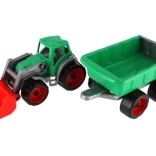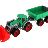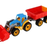 Ovaj traktor s utovarivačem i prikolicom izrađen je od robusne plastike koja izdržava dječju igru i otporna je na oštećenja.