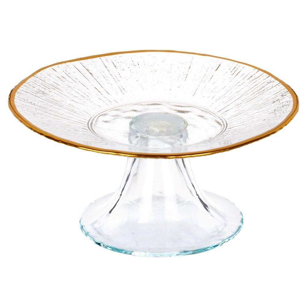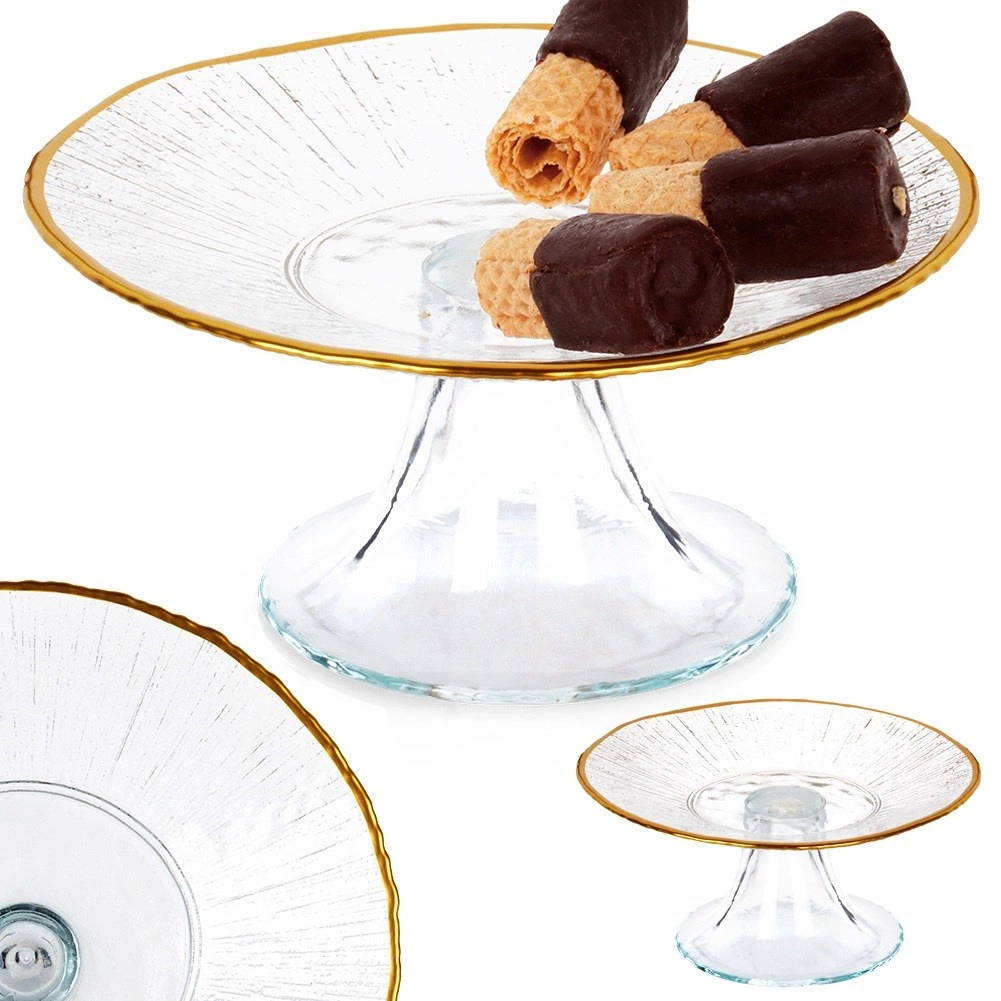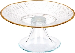 Stakleni stalak za tortu sa zlatnim rubom 15,5 cm