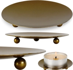 Elegantno metalno postolje za svijeće promjera 8,5 cm u mat zlatnoj boji. Zahvaljujući trima kuglastim nožicama je stabilno, štiti površine od topline i voska te svijećama daje stilsku prezentaciju. Minimalistički dizajn pristaje modernim interijerima, a može poslužiti i kao dekorativna posudica za sitnice ili nakit.