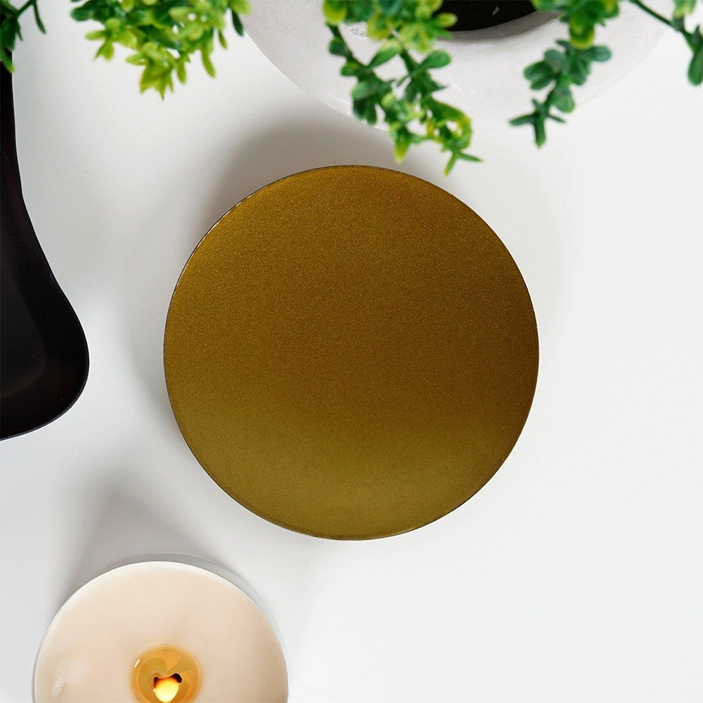 Otkrijte stilski i funkcionalan dodatak za vaš dom – metalno postolje za svijeće u mat zlatnoj. Niski tanjurić na trima kuglastim nožicama osigurava izvrsnu stabilnost i lagano podizanje iznad površine, što pomaže odvoditi toplinu i štititi namještaj od voska i žara. Minimalistički izgled lako ćete uskladiti s bilo kojim stilom interijera.