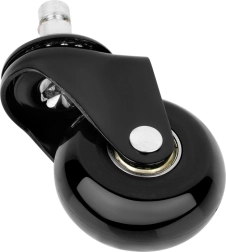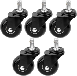 Praktičan set od pet zamjenskih kotačića za uredsku stolicu donosi tih i gladak pomak po tvrdim podovima. Gumena površina minimalizira buku i vibracije te istodobno štiti podove od ogrebotina. Zahvaljujući promjeru kotačića 50 mm i metalnom klinu 10 mm lako odgovaraju širokom rasponu stolica.