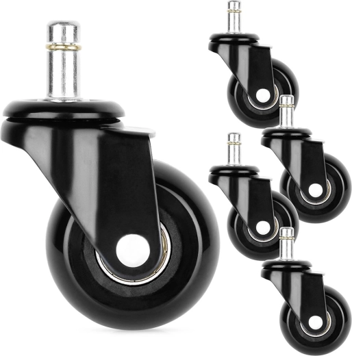 Zamijenite stara kotačića s tihim i izdržljivim gumenim kotačićima promjera 50 mm s univerzalnim klinom 10 mm. Set od 5 komada osigurava glatko kretanje, zaštitu poda od ogrebotina i jednostavnu ugradnju bez alata. Kompatibilni s mnogo uredskih stolica, uključujući odabrane IKEA modele s klinom 10 mm.