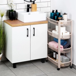 Robusna, a ipak lagana izvedba od izdržljive plastike jamči laku montažu i stabilnost. Zahvaljujući četirima okretnim kotačićima (dva s kočnicom) policu lako premjestite kamo je trenutačno trebate i sigurno je učvrstite na mjestu. Minimalistički bež dizajn prirodno se uklapa u svaki interijer.