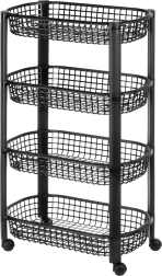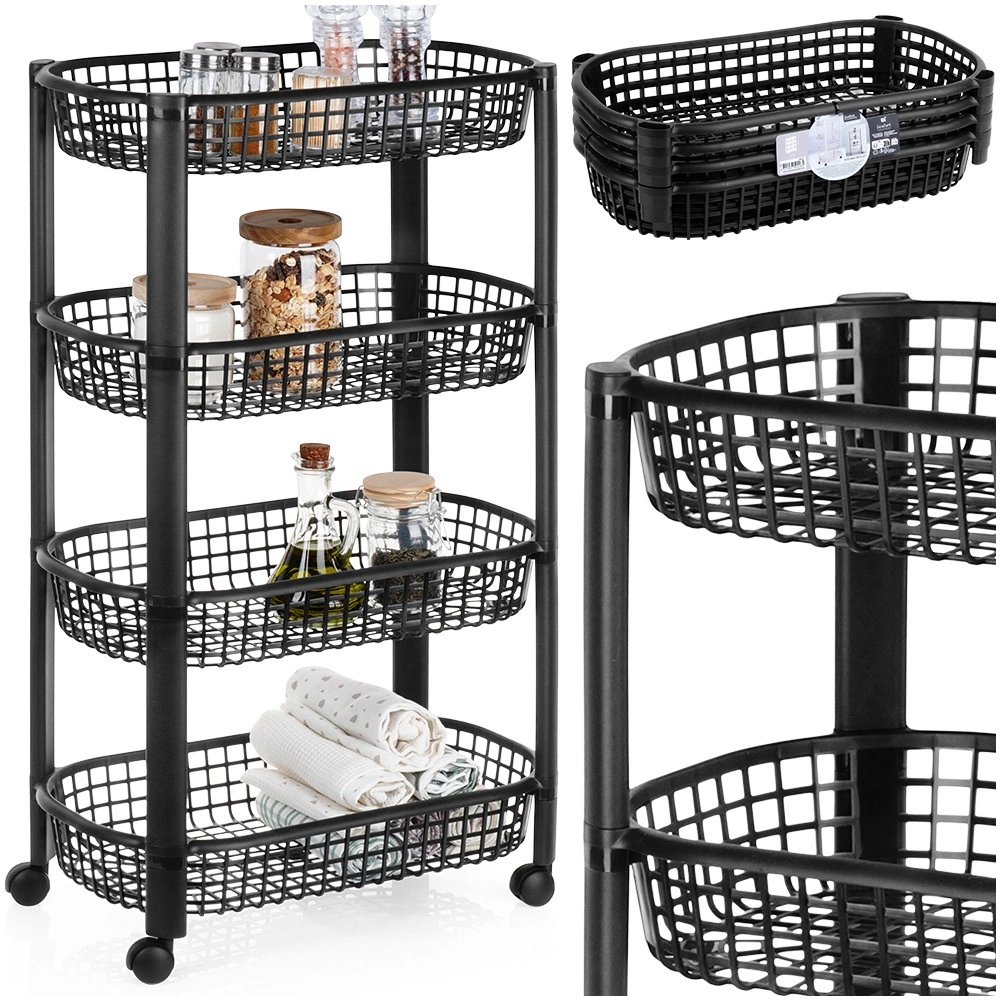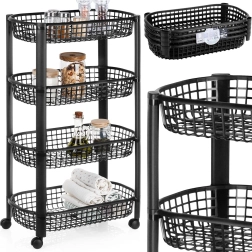 Praktična četverokatna pokretna polica s uskim profilom nudi mobilni prostor za pohranu za kuhinju, kupaonicu, ured i radionicu. Lagana i stabilna konstrukcija od izdržljive plastike, četiri prozirna/ventilirana košara i kotači s kočnicom osiguravaju lako premještanje i čvrsto stajanje. Idealno za organizaciju hrane, kozmetike, sredstava za čišćenje i kućnih dodataka.