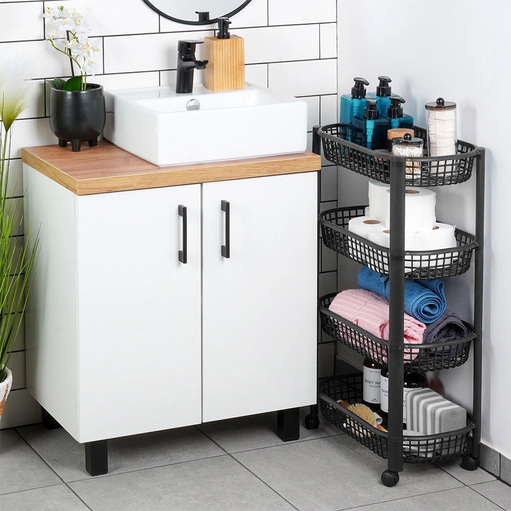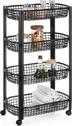 Četiri duboke košare pružaju mnogo prostora, dok uska baza štedi svaki centimetar poda – idealno za kuhinje, kupaonice i ostave.