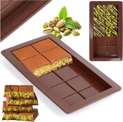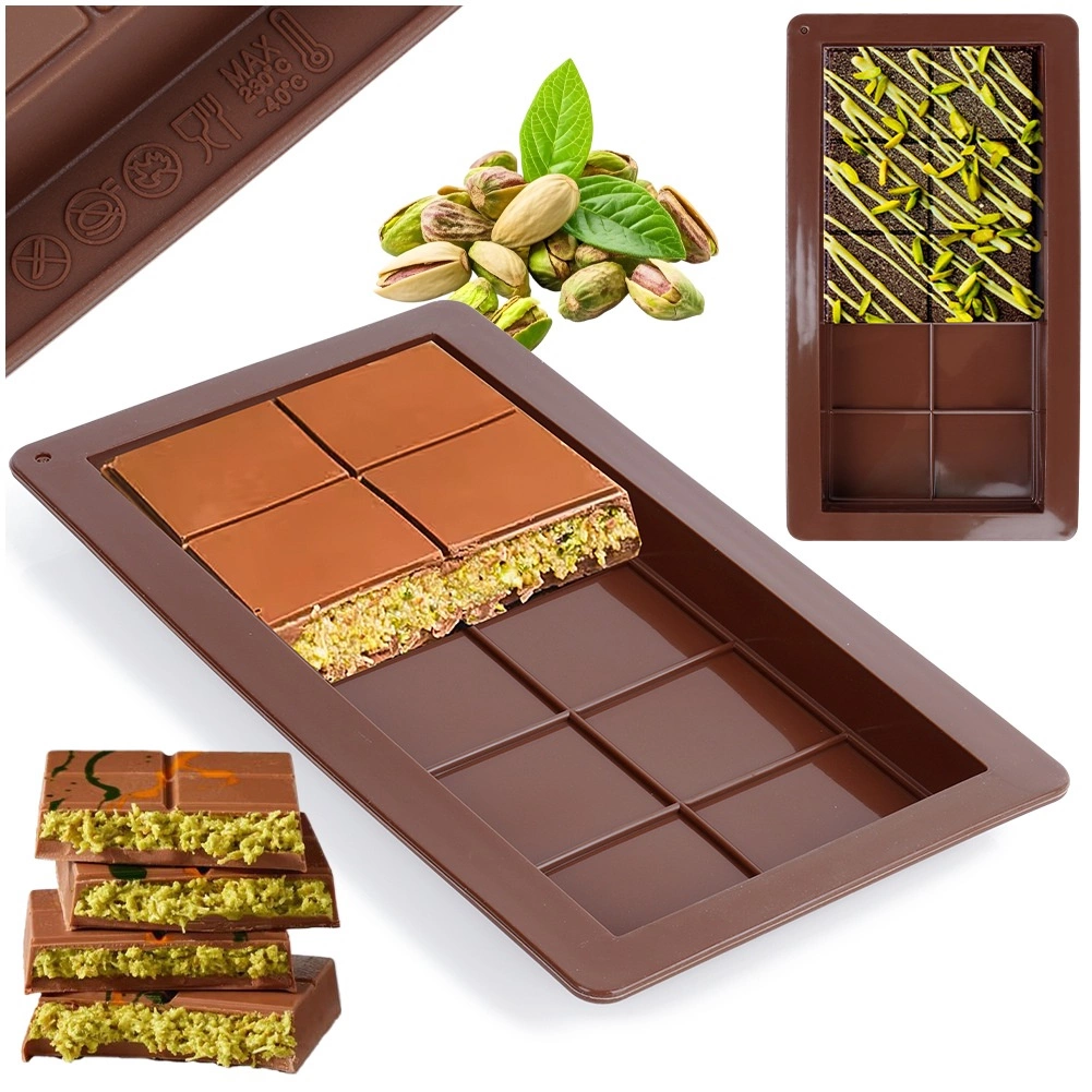 Ovaj kvalitetan silikonski kalup omogućuje vam pripremu savršeno oblikovanih čokoladnih pločica – od klasične mliječne do varijanti s orašastim plodovima, sušenim voćem ili začinima. Fleksibilan i neljepljiv silikon osigurava čiste rubove i lako vađenje bez potrebe za podmazivanjem.