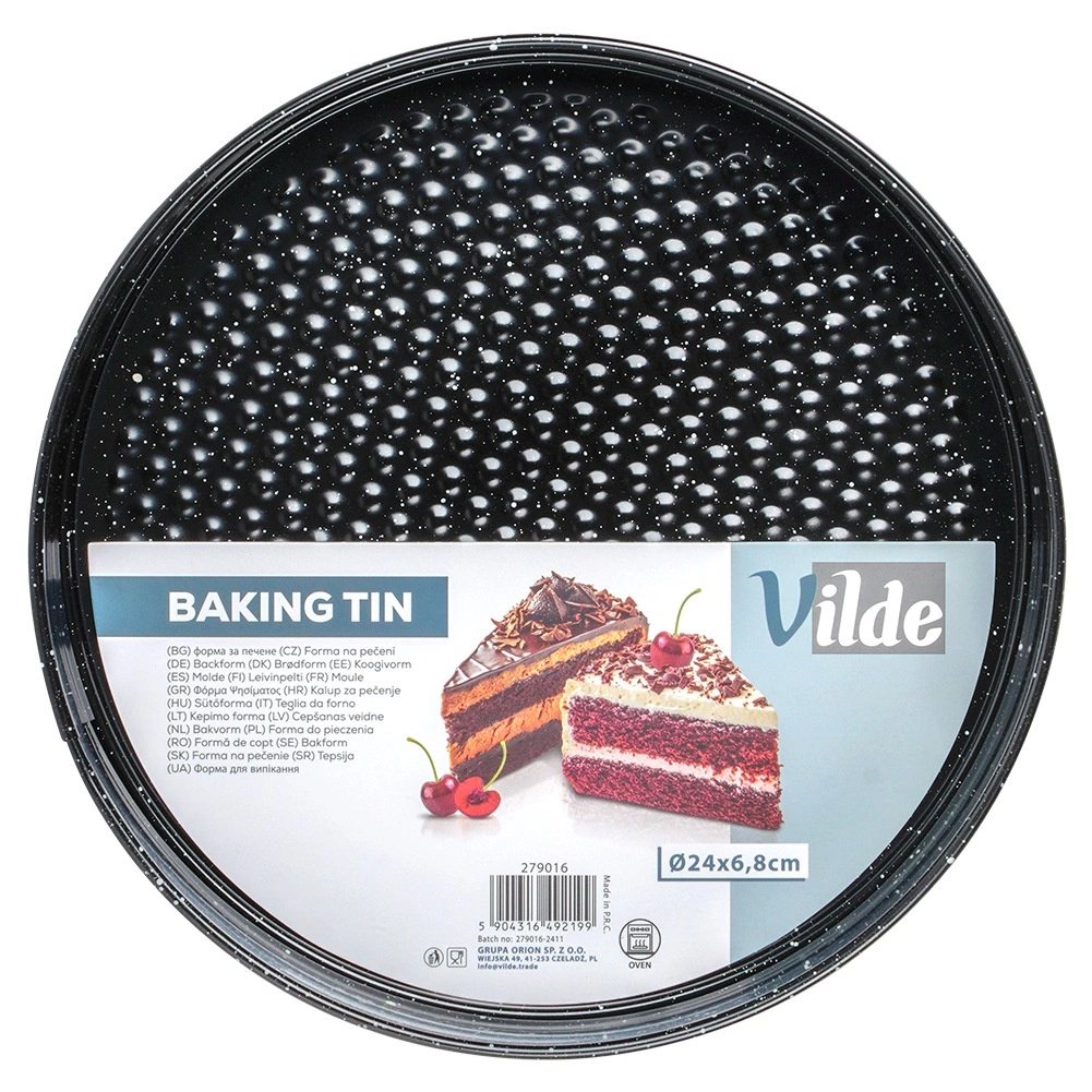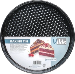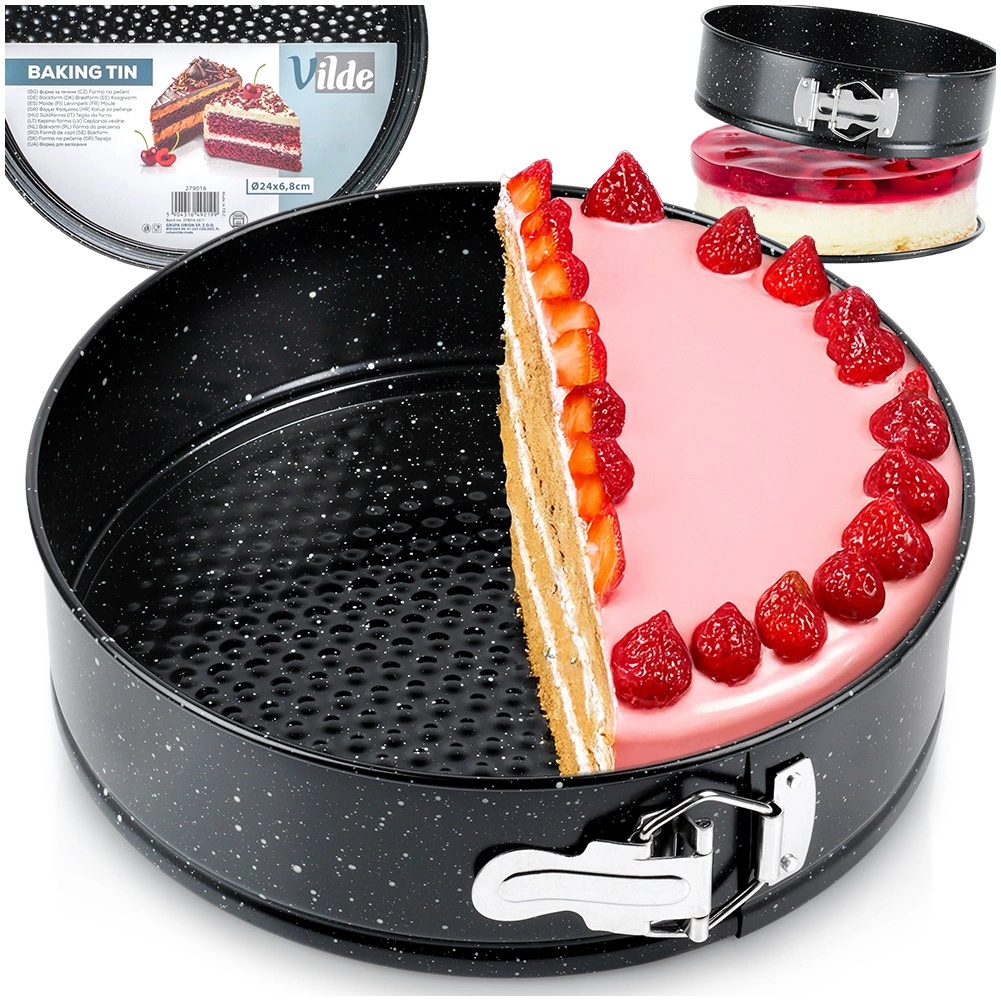 Praktičan okrugli kalup za tortu promjera 24 cm od izdržljivog ugljičnog čelika s neljepljivim granitnim premazom. Zahvaljujući rastezivnim stijenkama i odvojivom dnu tortu ili cheesecake lako ćete izvaditi bez oštećenja. Materijal osigurava ujednačeno pečenje do 230 °C i jednostavno čišćenje. Idealan za svakodnevno pečenje torti, biskvitnih kora, cheesecakeova i zapečenih deserata.
