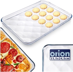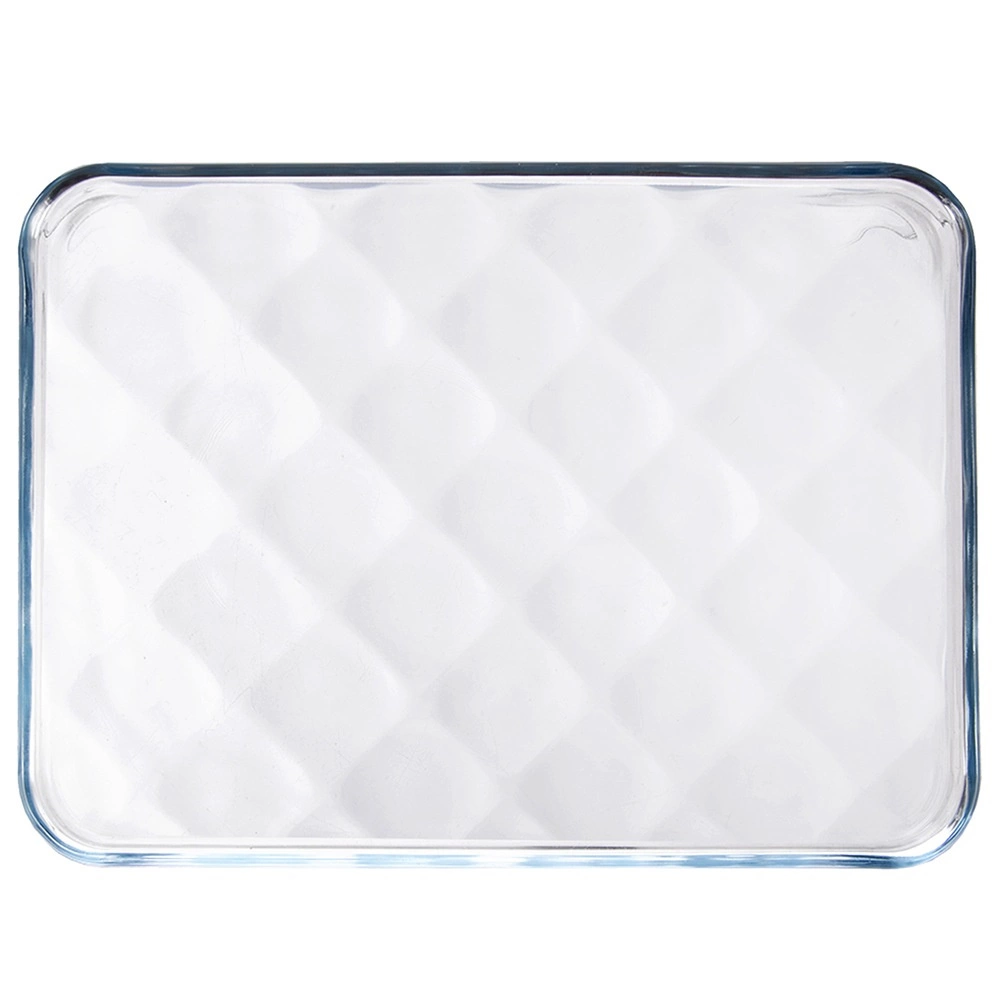 Univerzalna staklena posuda od borosilikatnog stakla dimenzija 33,5 × 24,5 × 2 cm za pečenje, podgrijavanje i posluživanje. Zahvaljujući nježnom reljefu dna elegantna je i praktična – osigurava bolju cirkulaciju zraka i smanjuje prijanjanje. Prikladna za pećnicu, mikrovalnu, perilicu posuđa i zamrzivač (−40 °C do +300 °C).
