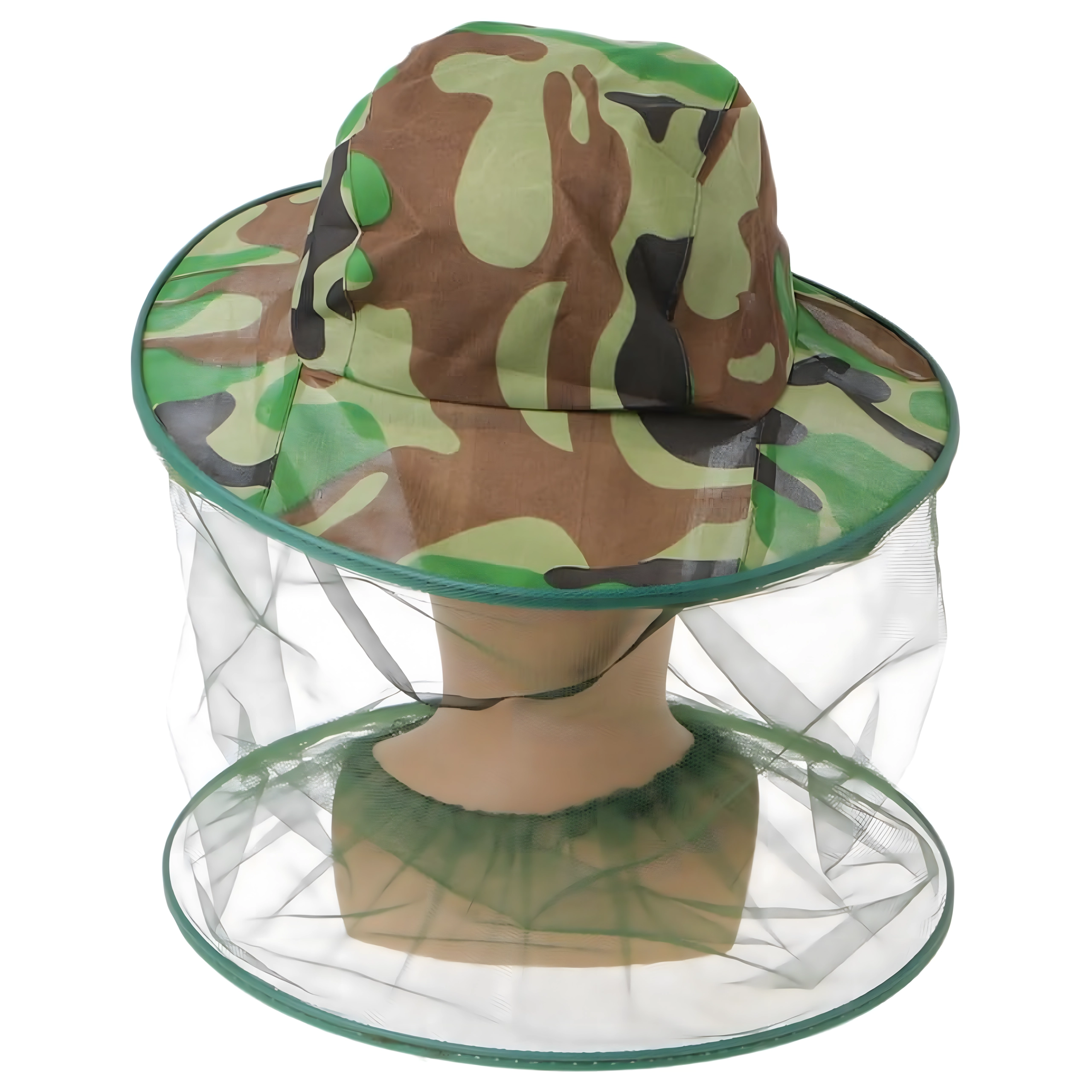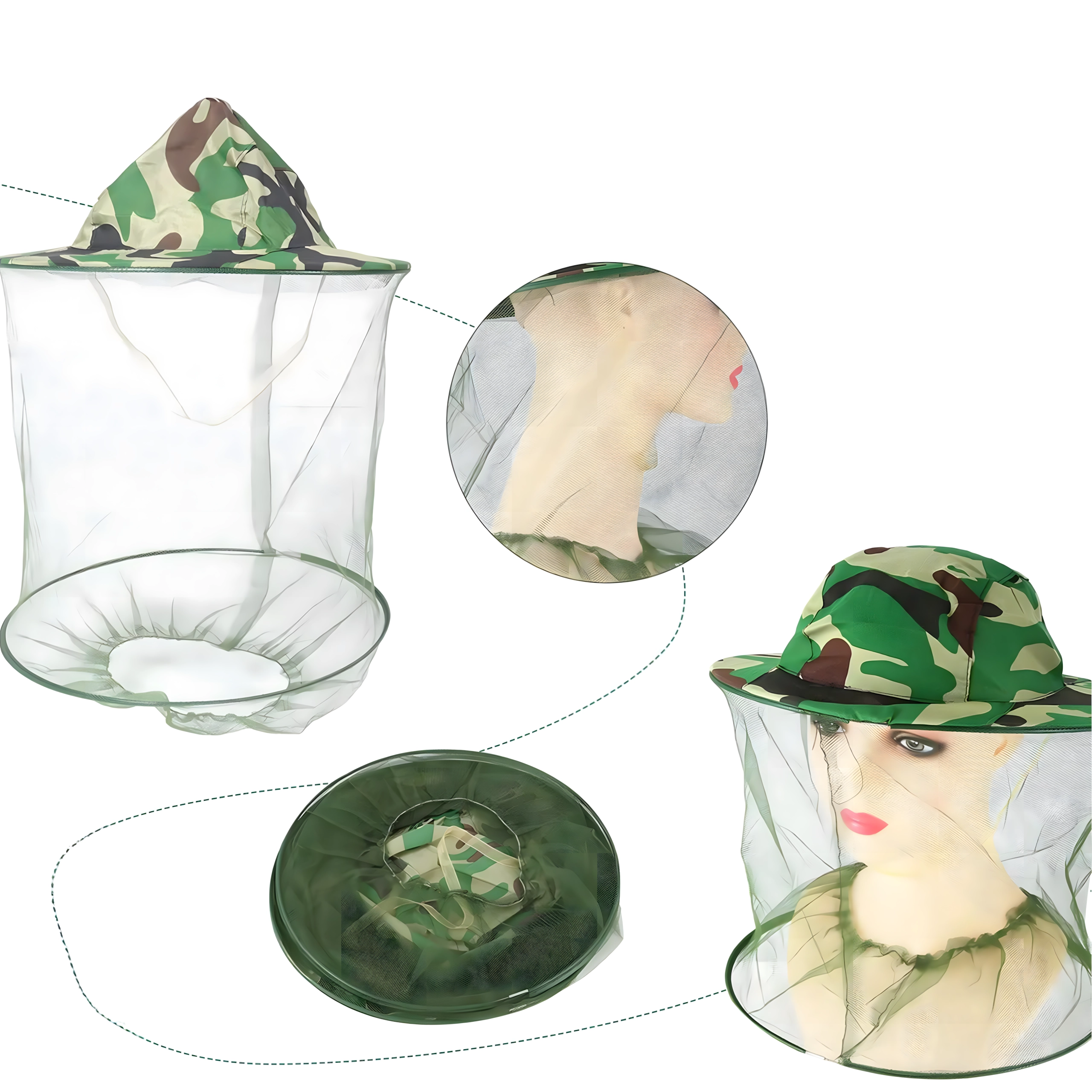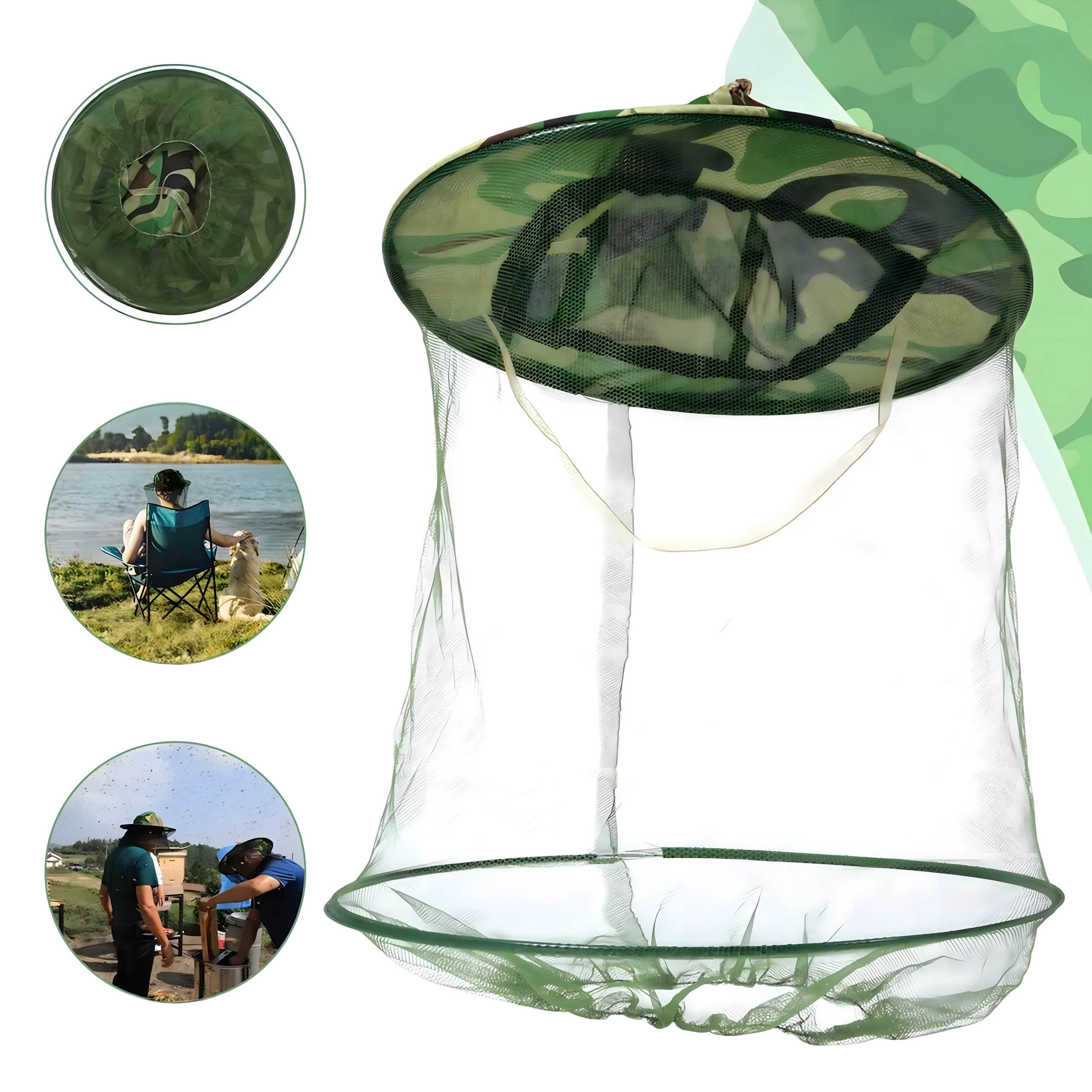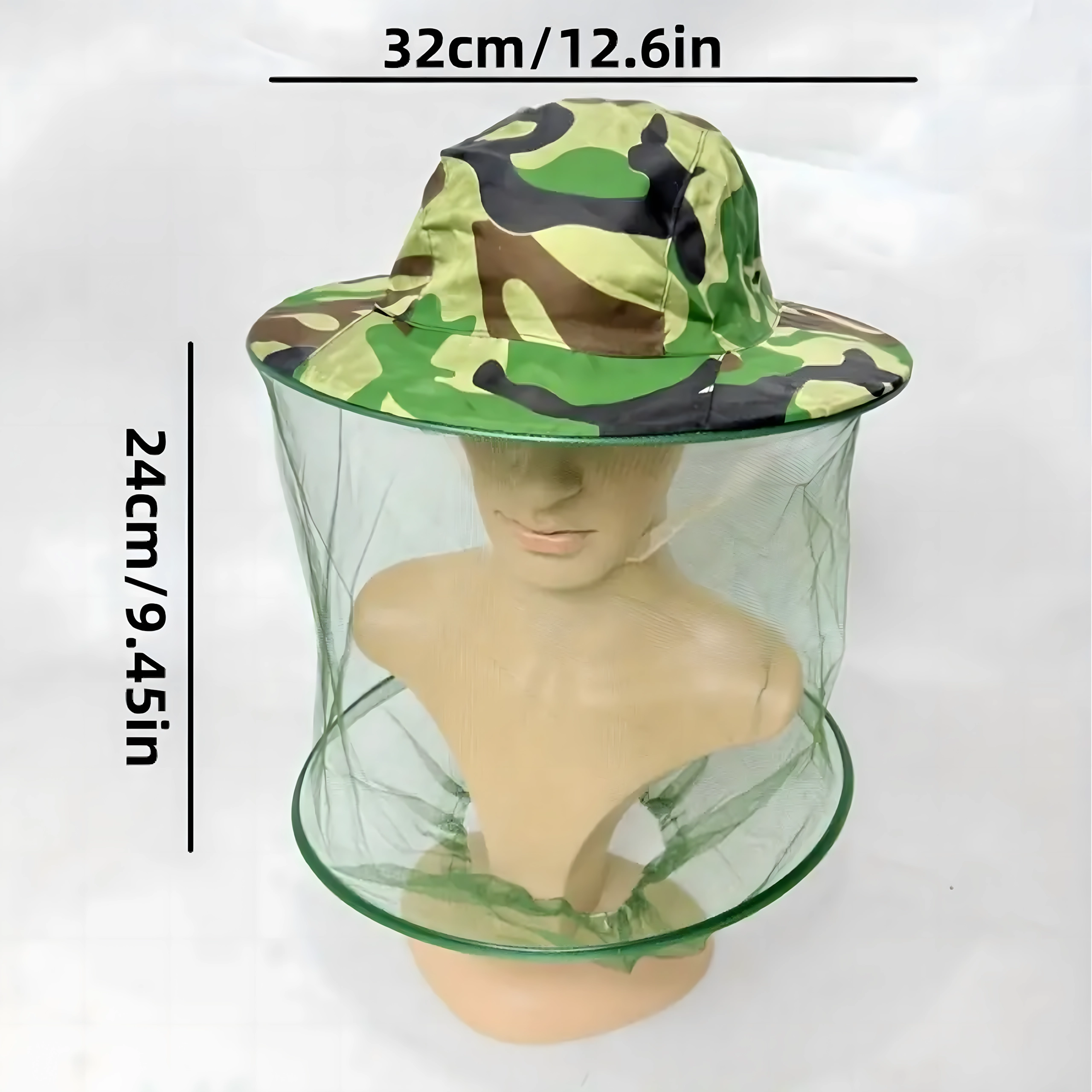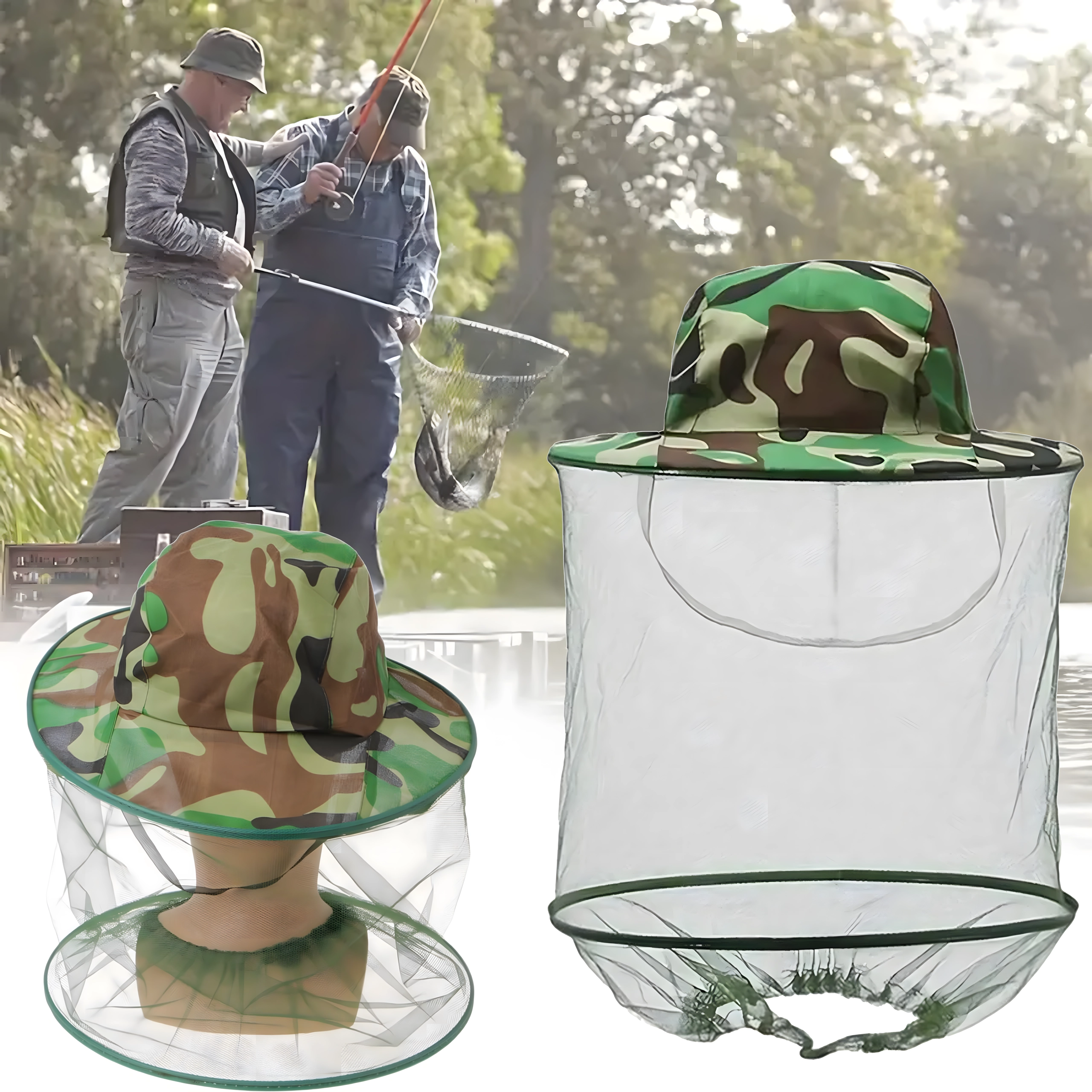 Široki obod drži mrežu podalje od lica, a kamuflažni uzorak prikladan je za ribiče, lovce i ljubitelje aktivnosti na otvorenom.