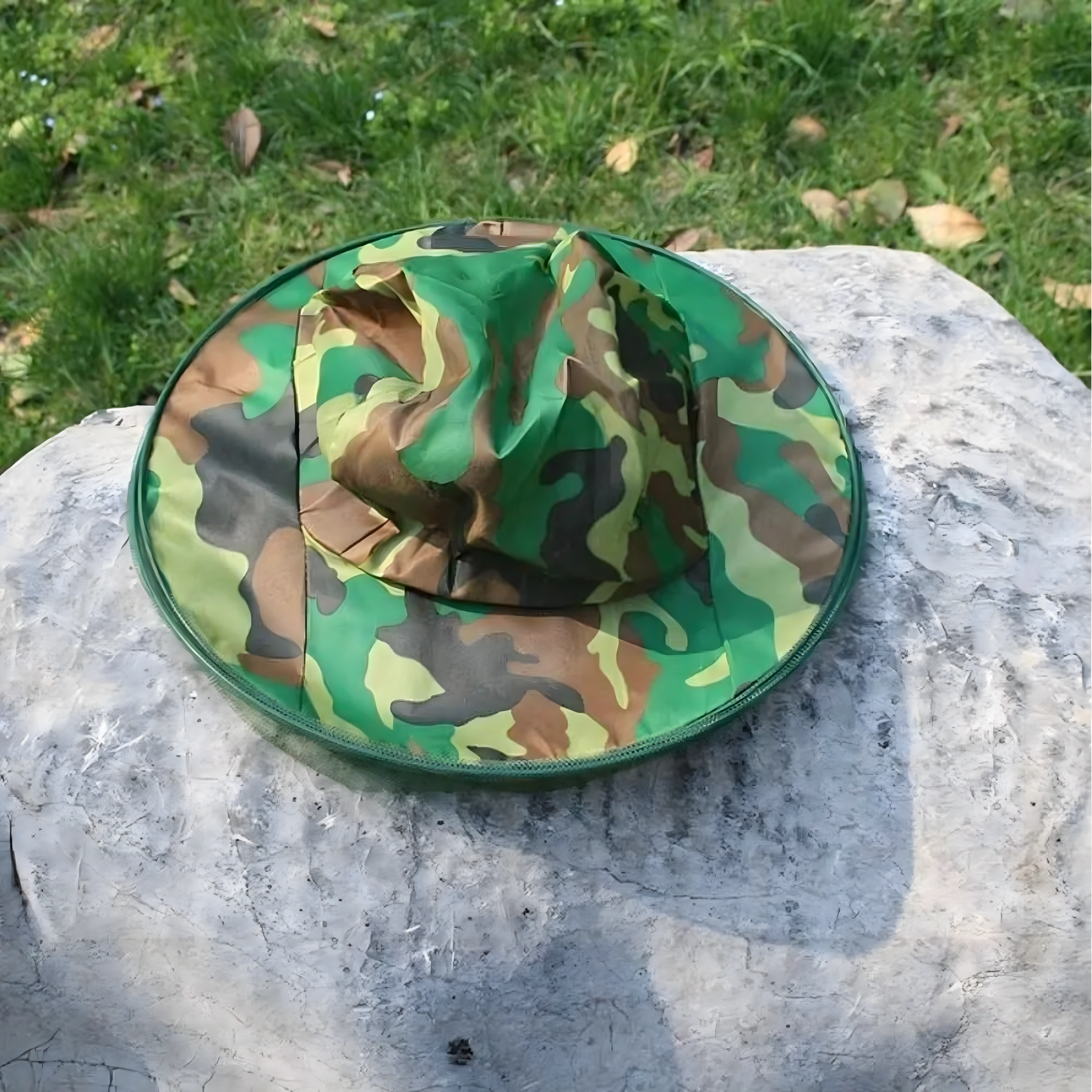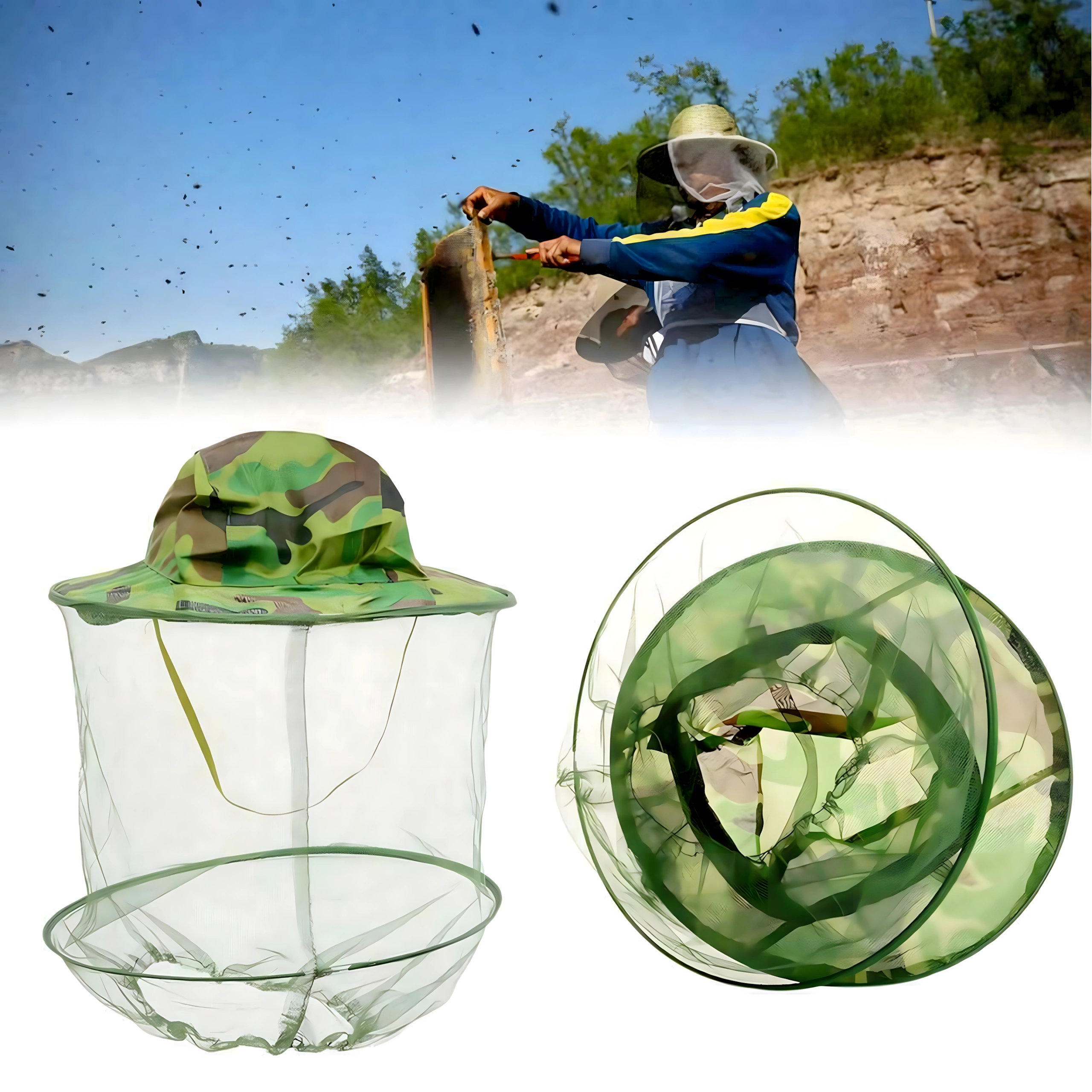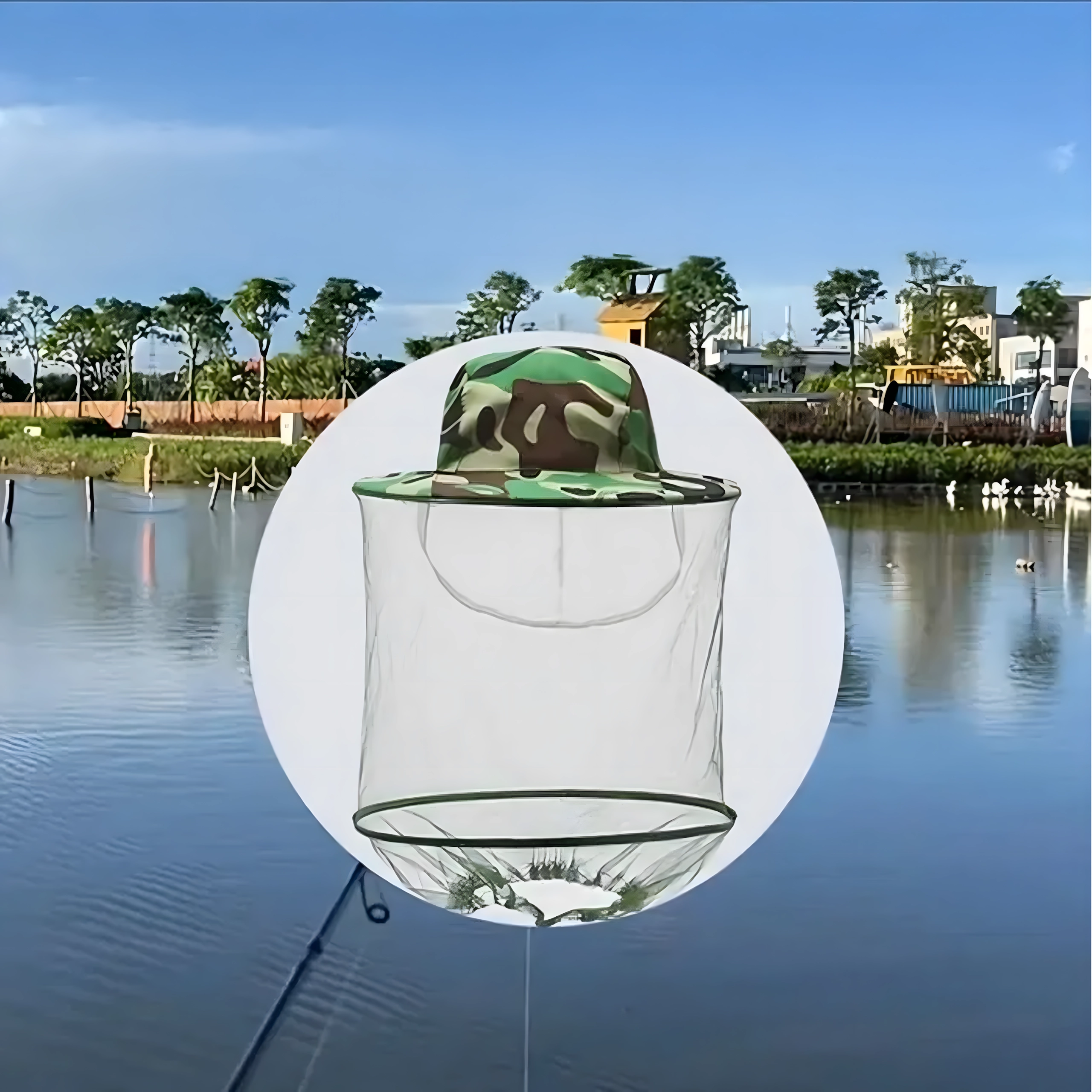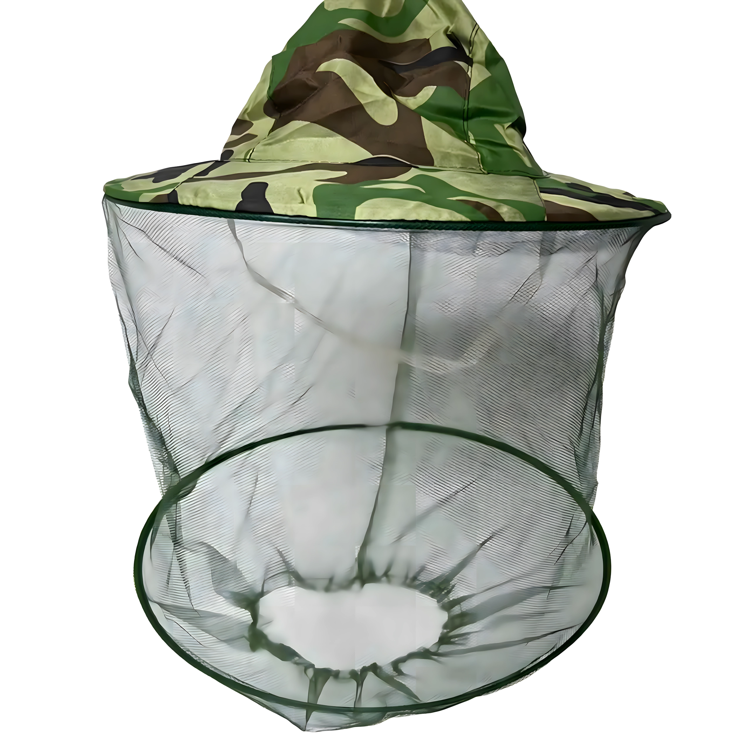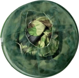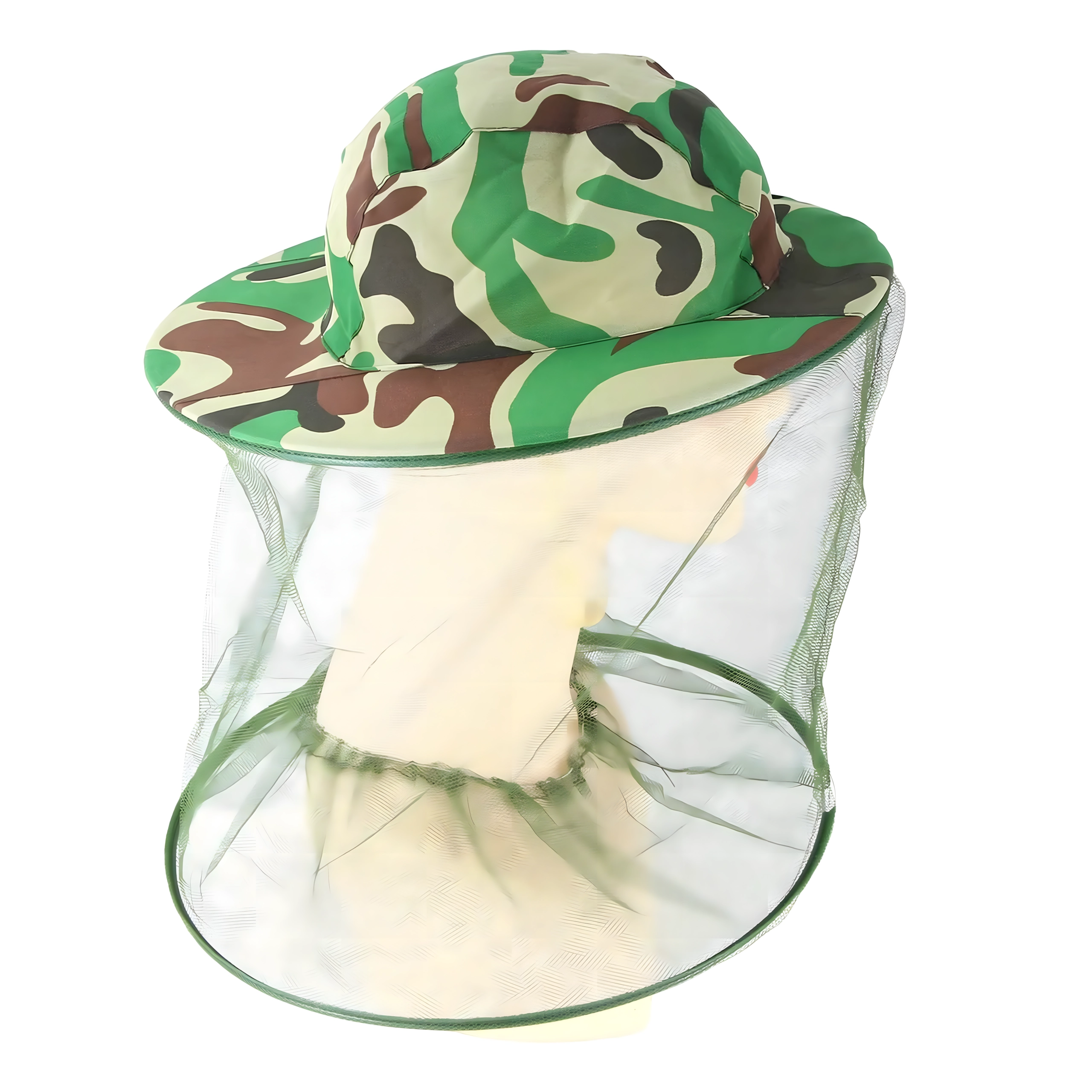 Široki obod drži mrežu podalje od lica, a kamuflažni uzorak prikladan je za ribiče, lovce i ljubitelje aktivnosti na otvorenom.