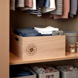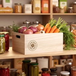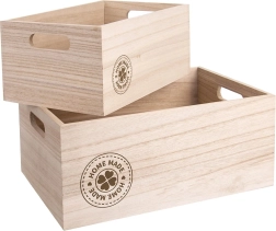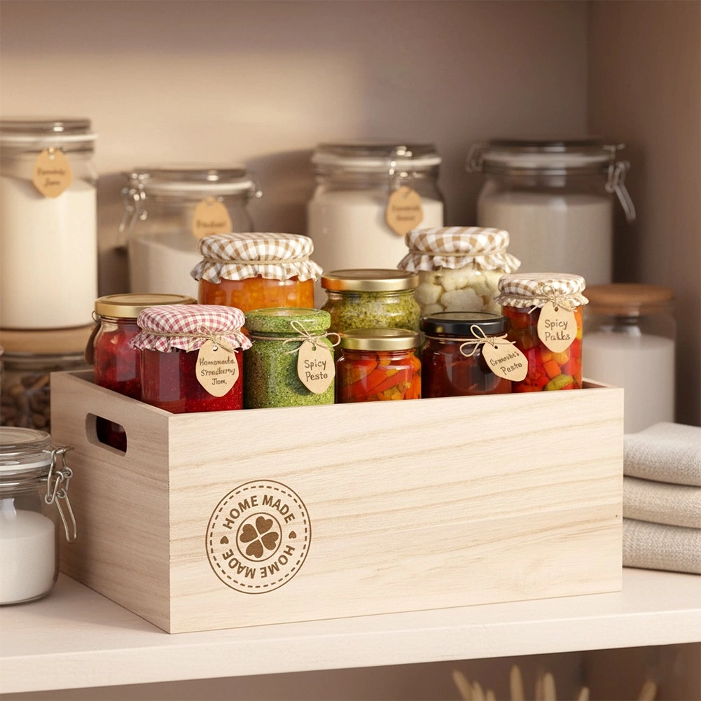 Otkrijte elegantno i funkcionalno rješenje za svakodnevnu organizaciju. Drvena spremna kutija dimenzija 26 × 16,5 × 11,5 cm ističe se prirodnim izgledom, čvrstom konstrukcijom i udobnim ručkama za sigurno prenošenje. Dekorativni tisak „Home Made” unosi ugodan ugođaj u vaš interijer.