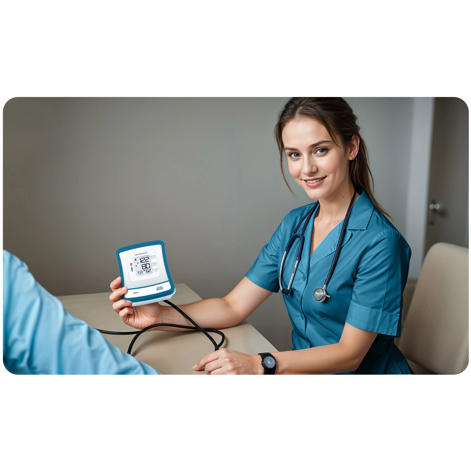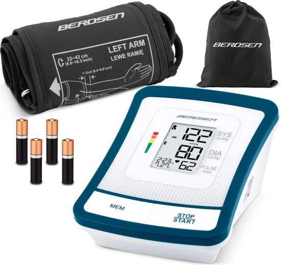 Digitalni tlakomjer za nadlakticu BERDSEN BD-120 pruža brzo i precizno mjerenje krvnog tlaka i pulsa u udobnosti doma. Nudi memoriju do 120 mjerenja, detekciju nepravilnog srčanog ritma (IHB), jednostavno upravljanje jednim gumbom i velik, čitljiv LCD zaslon s obojenom ljestvicom klasifikacije tlaka. U pakiranju se nalazi i manžeta 22–42 cm, torbica te 4 AA baterije za trenutačnu upotrebu.