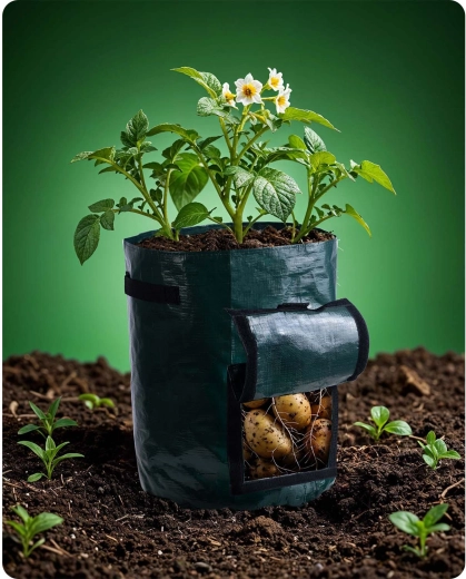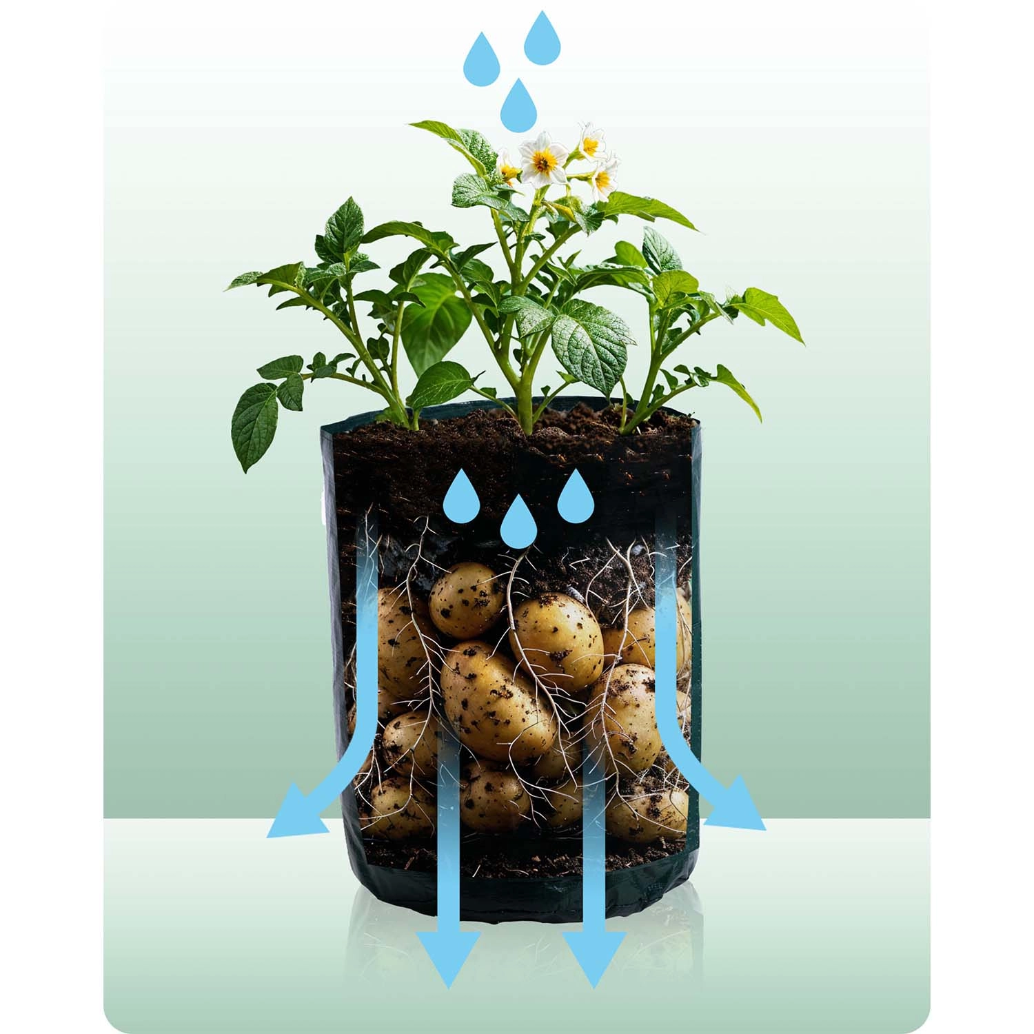 Otkrijte jednostavan uzgoj na balkonu, terasi i u malom vrtu. Vreća za uzgoj pruža optimalne uvjete za korijenje zahvaljujući prozračnom PE materijalu i promišljenom prozračivanju i otjecanju vode. Zahvaljujući prednjem prozorčiću na čičak pratite rast i berete samo dozrele gomolje bez prekopavanja cijele biljke.