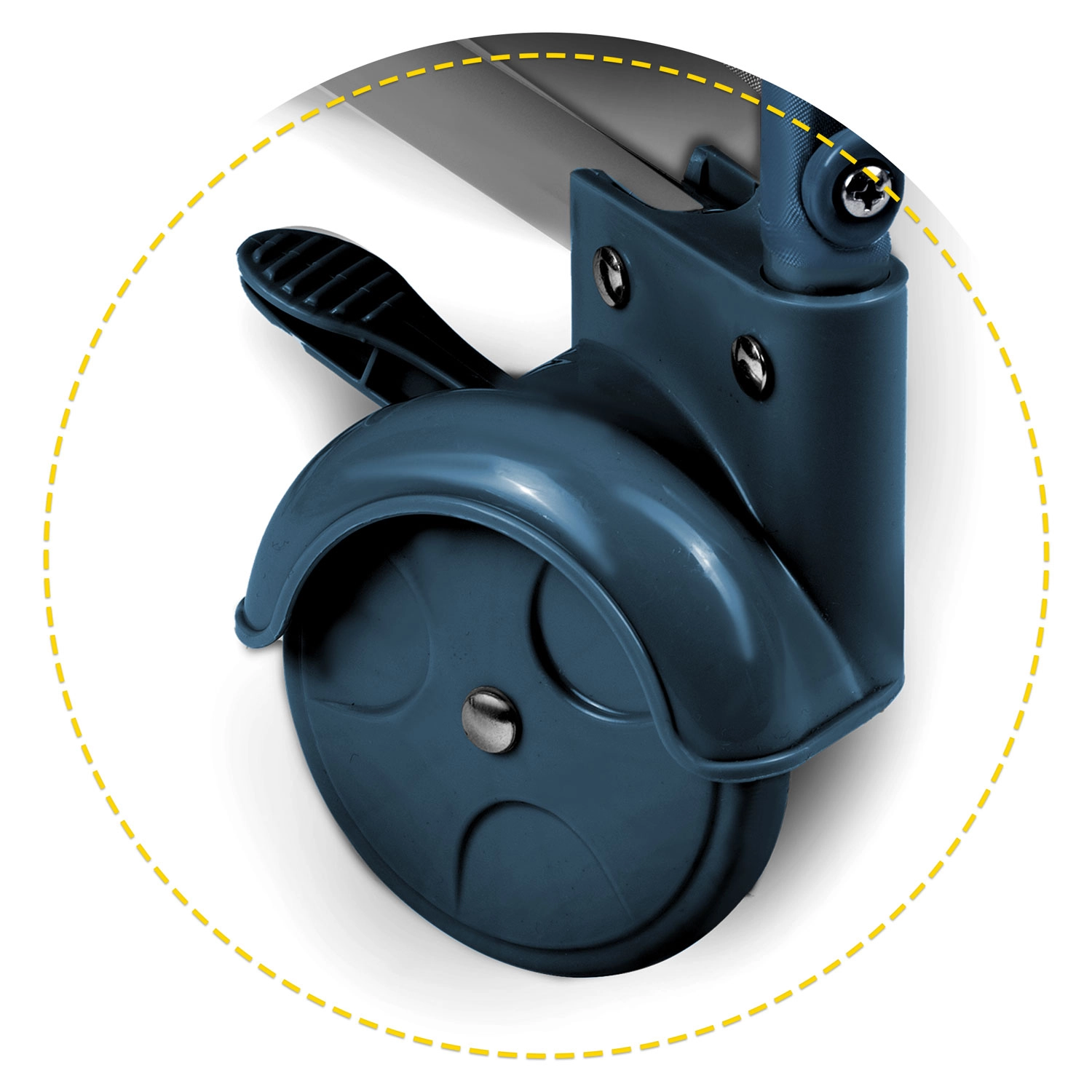 Dva kotačića omogućuju glatko premještanje krevetića. Integrirane kočnice nakon postavljanja sigurno ga fiksiraju na mjestu.