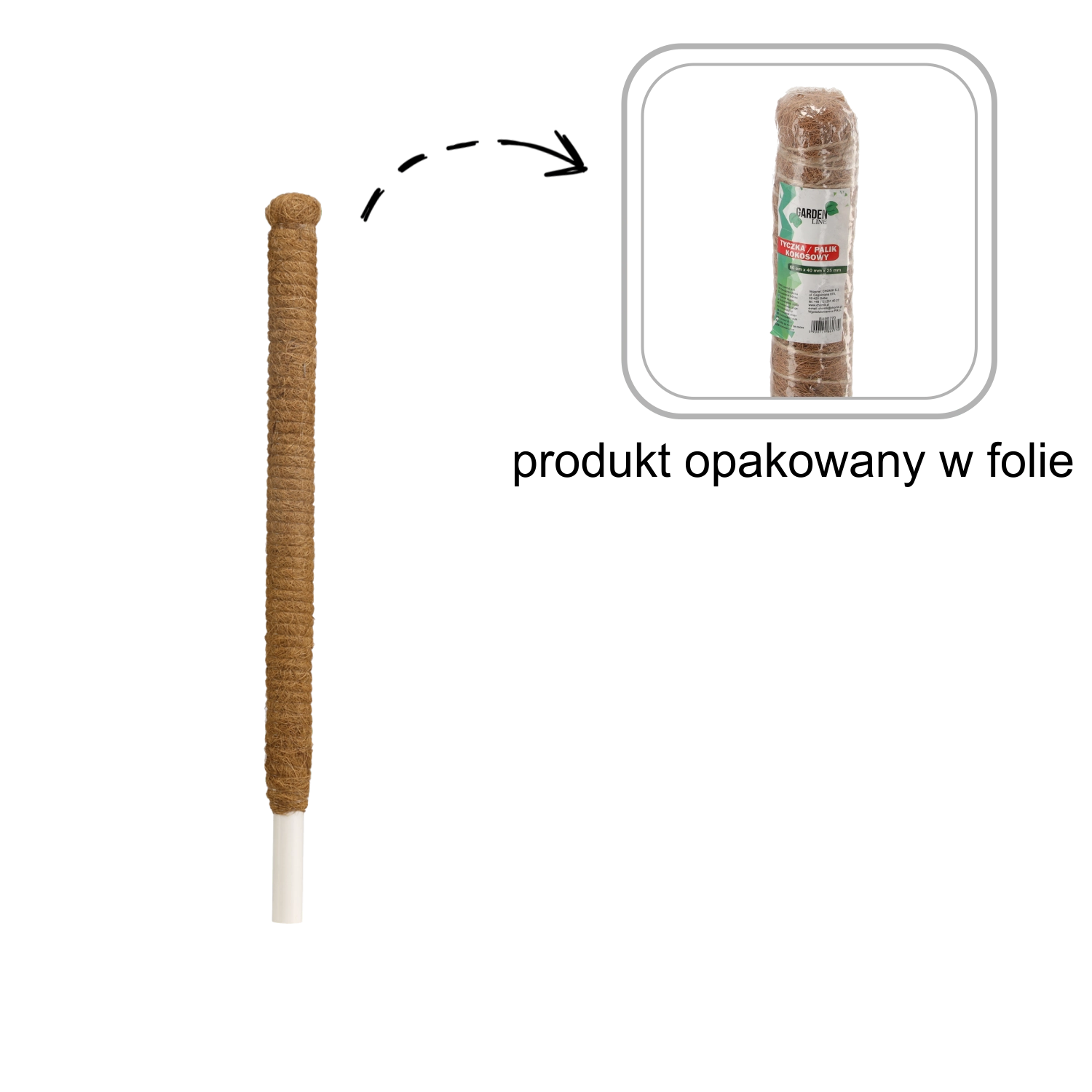 Potpora kombinira izdržljivu PVC cijev s prirodnim kokosovim opletom, koji je blag prema biljkama i estetski dojmljiv u svakoj posudi. Duljina od 150 cm pruža dovoljno prostora za rast i većim primjercima.