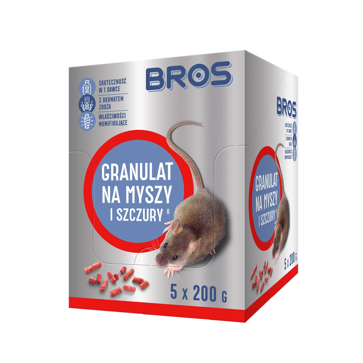 Granulat protiv miševa i štakora BROS je profesionalni mamac za brzo i pouzdano suzbijanje glodavaca. Zahvaljujući pažljivo odabranom sastavu bez nepotrebnih punila i s isključivo prehrambenim sastojcima, iznimno je privlačan glodavcima. Djelovanje s nekoliko dana zakašnjenja sprječava povezivanje mamca s uginućem, što povećava njegovu učinkovitost i u populacijama s naučenom opreznošću.